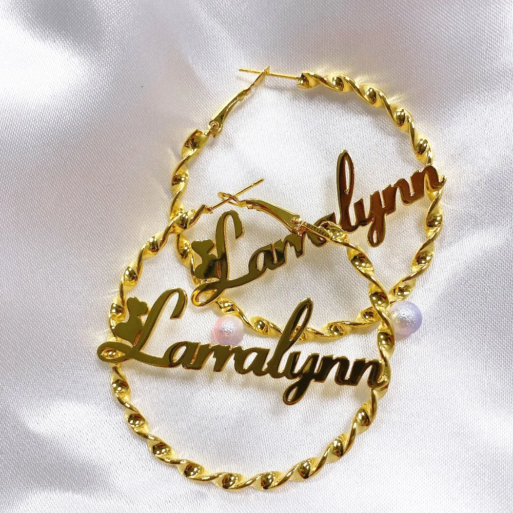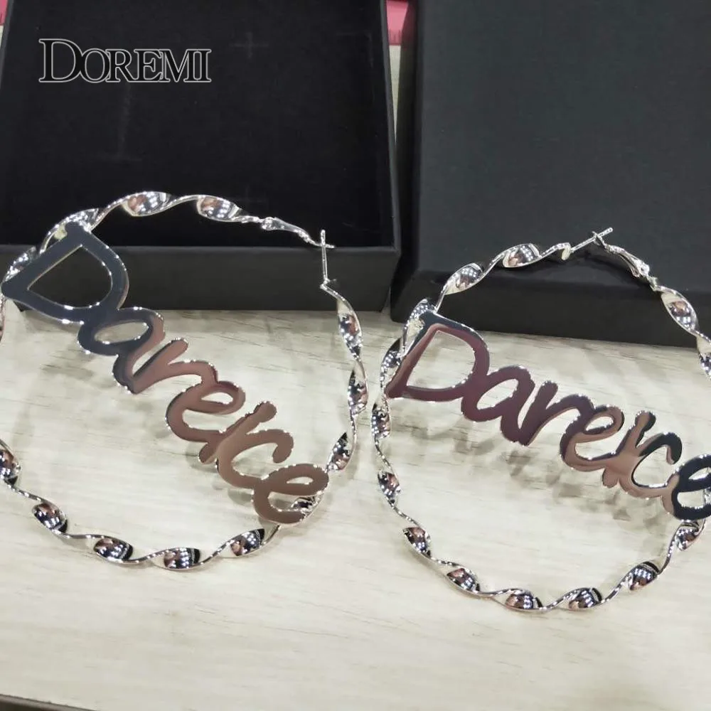 Серьги DOREMI 4-9 см из нержавеющей стали, с именем на заказ, в БАМБУКОВОМ стиле, очаровательные серьги с именем