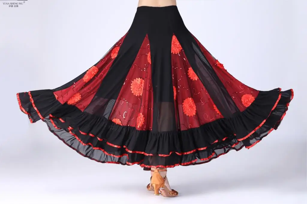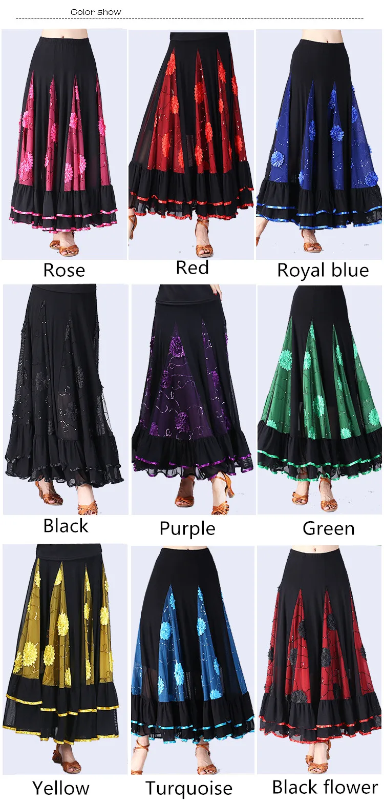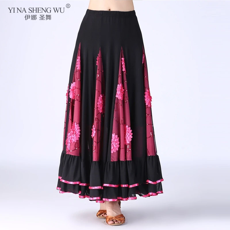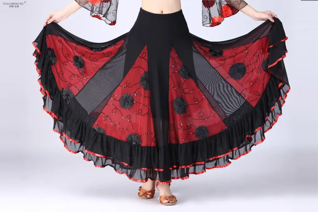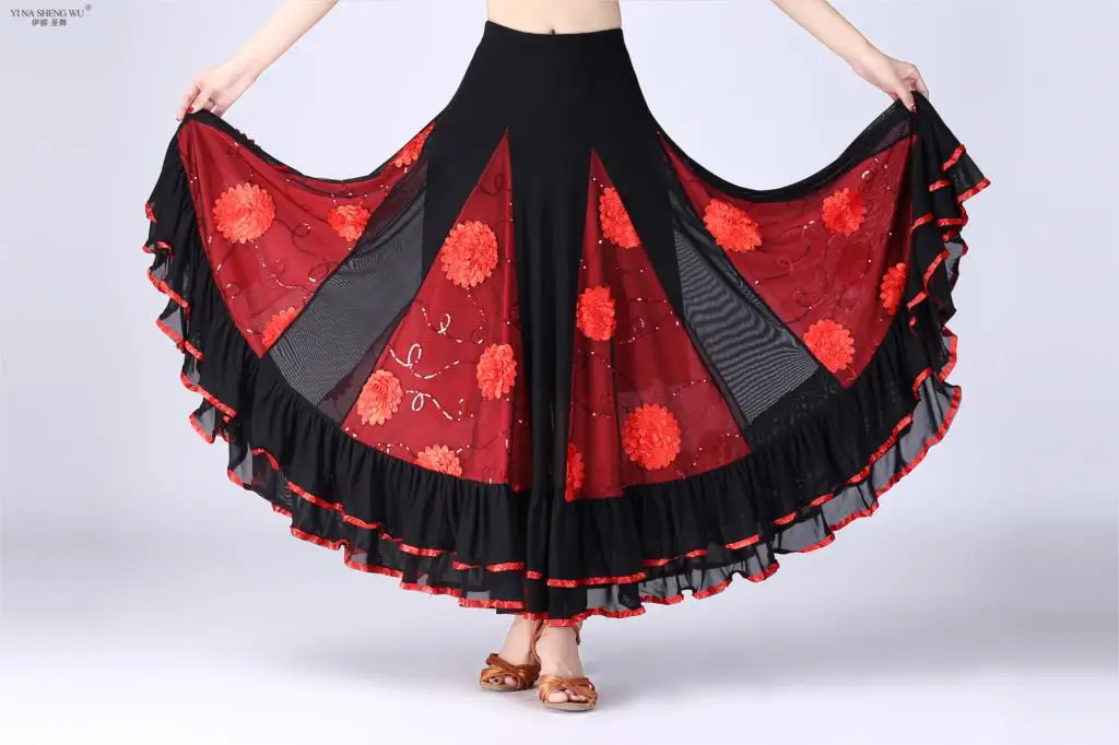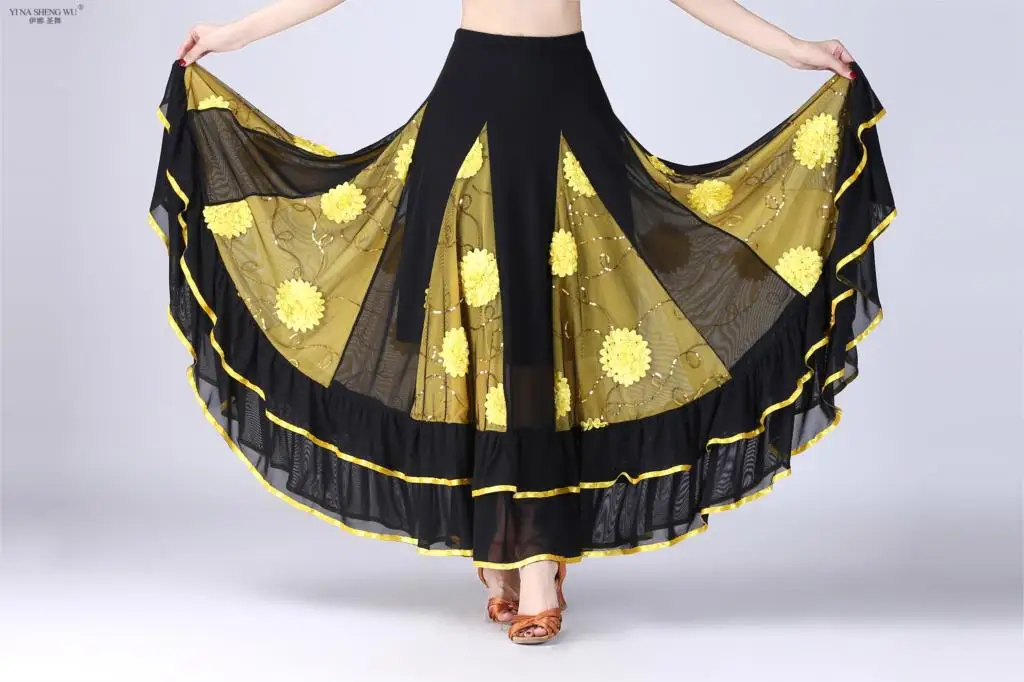Женская длинная юбка для танца живота, 9 видов цветов юбка для танцев, Цыганская юбка для выступлений, женское платье для танцев, длинная испанская юбка