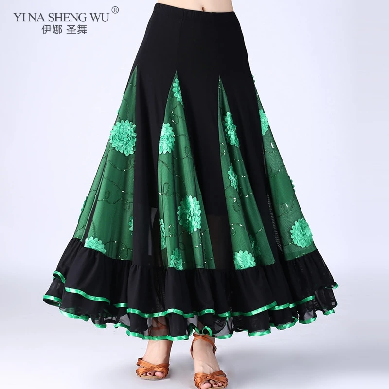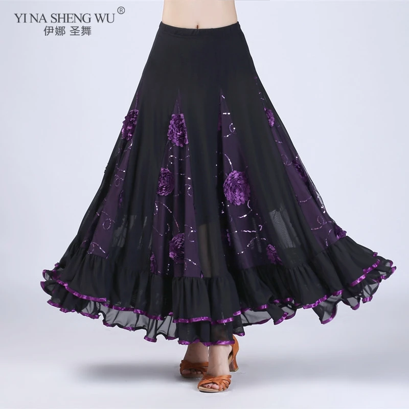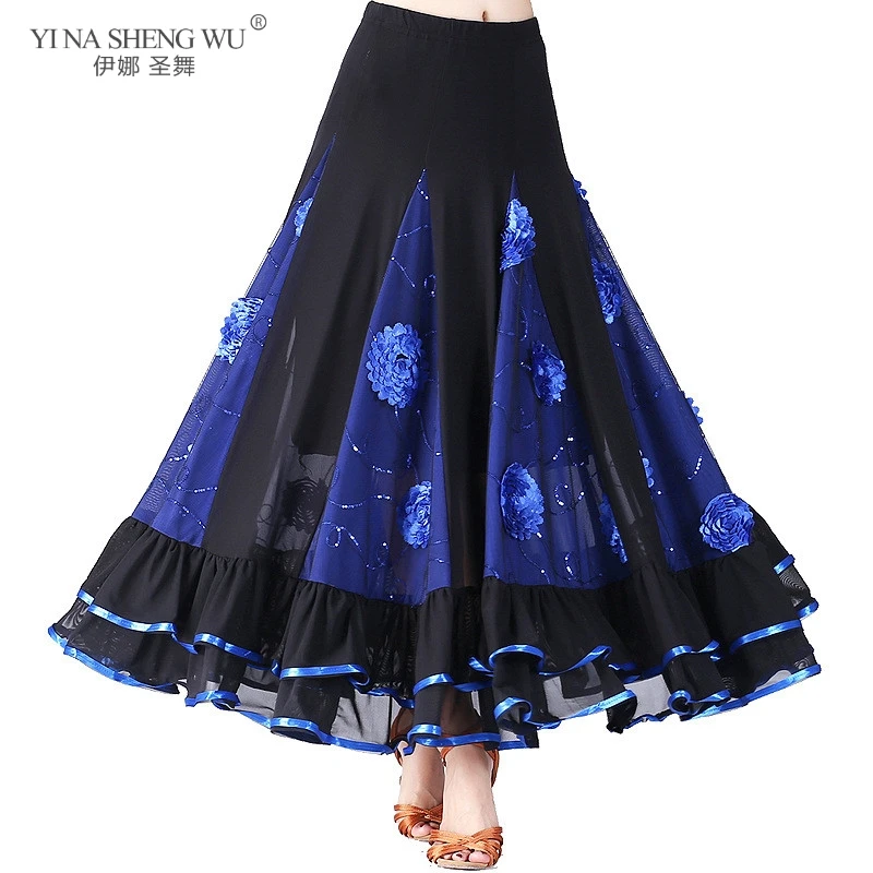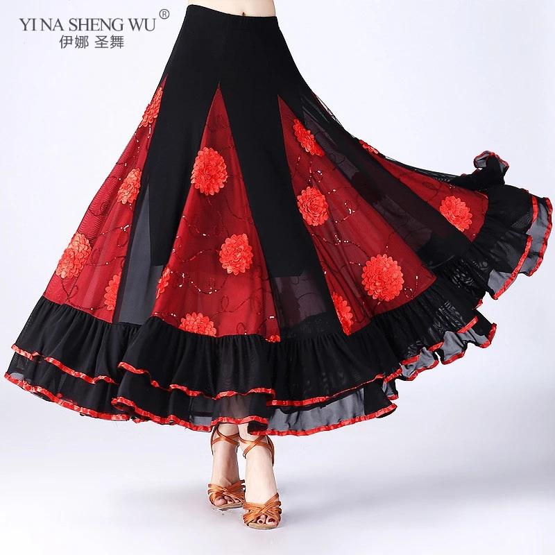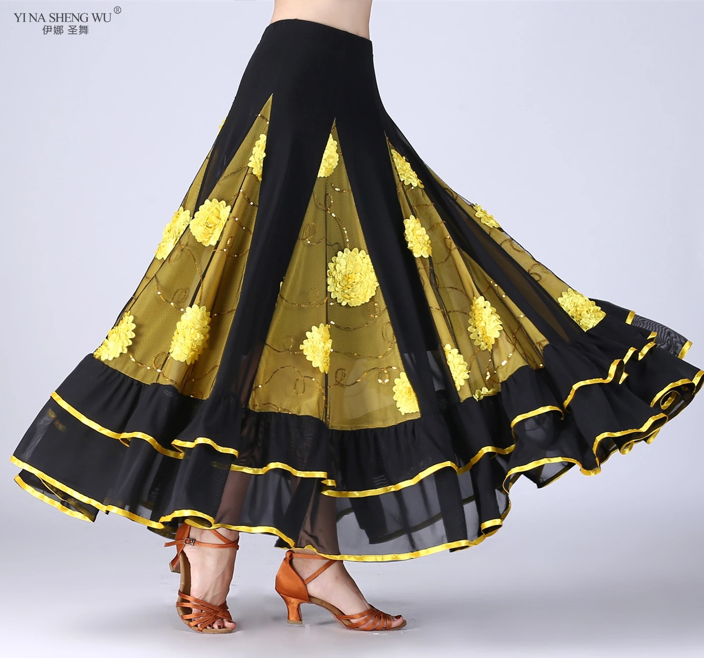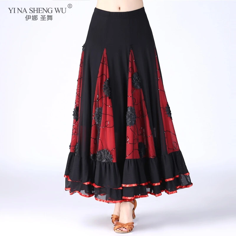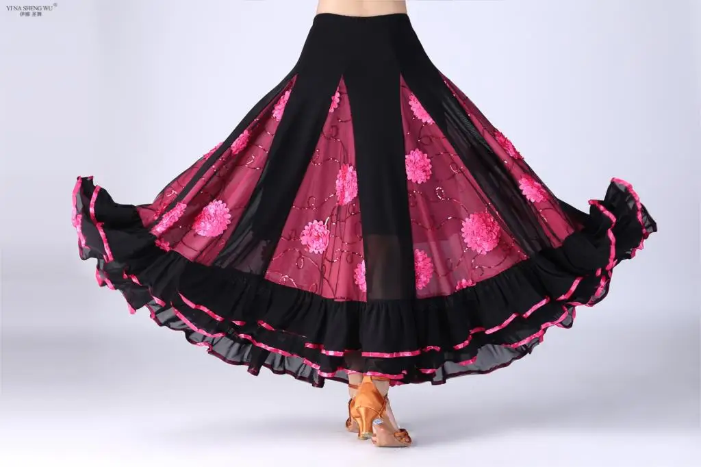 Женская длинная юбка для танца живота, 9 видов цветов юбка для танцев, Цыганская юбка для выступлений, женское платье для танцев, длинная испанская юбка