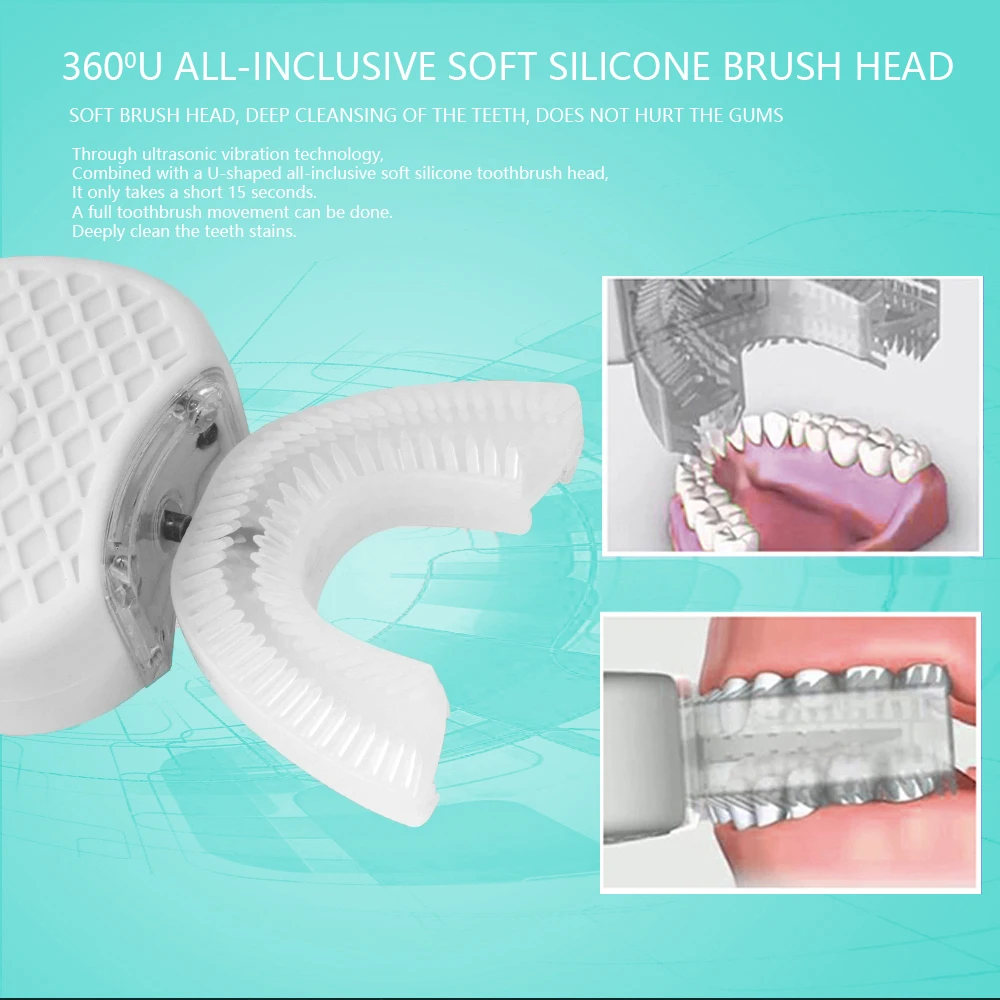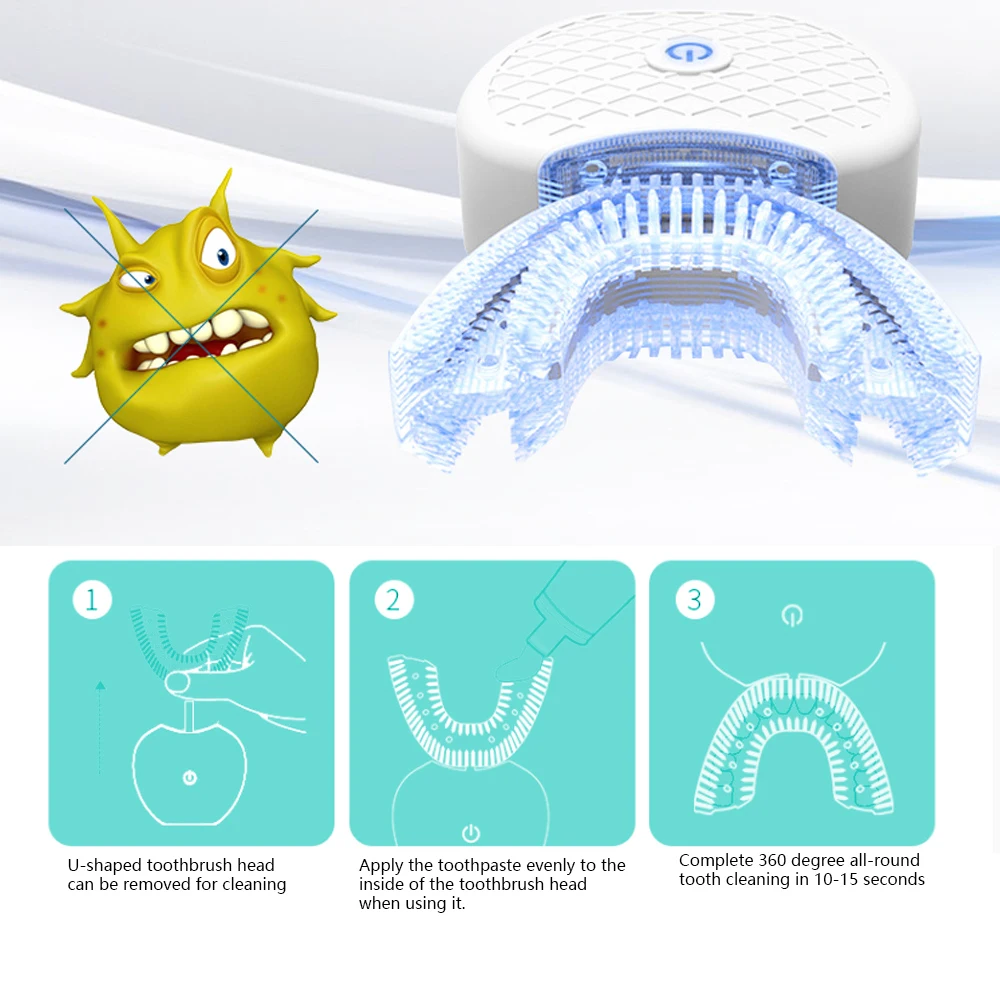 1. Уникальная U-образная головка щетки, соответствующая форме зубов, высокочастотная звуковая вибрация,
