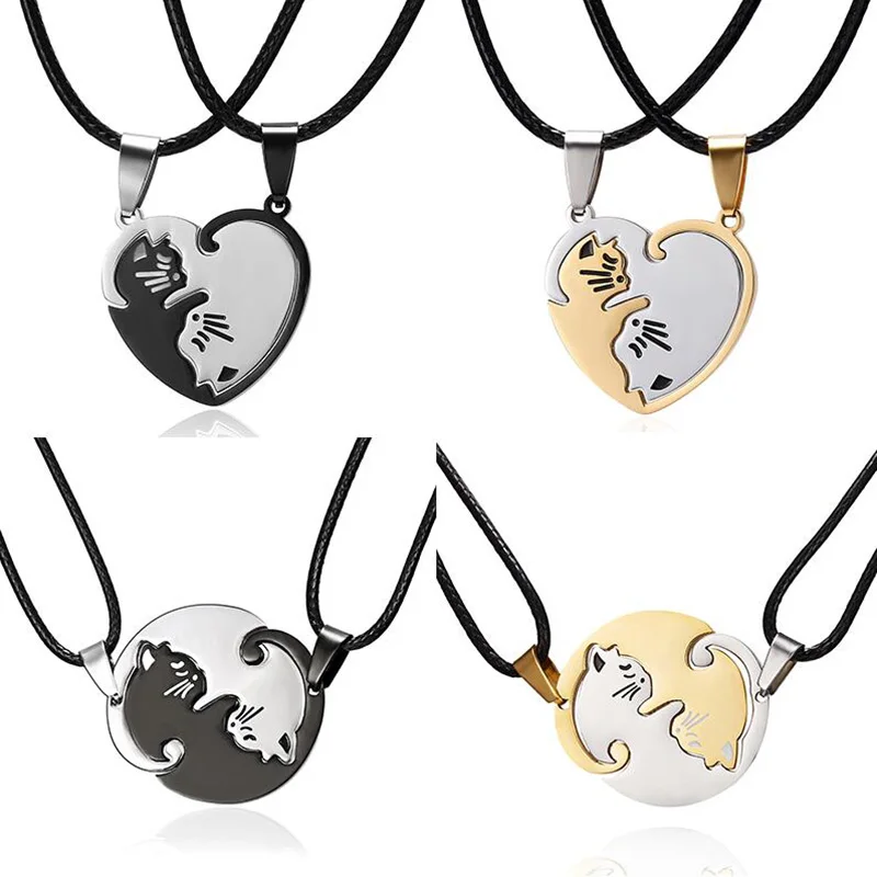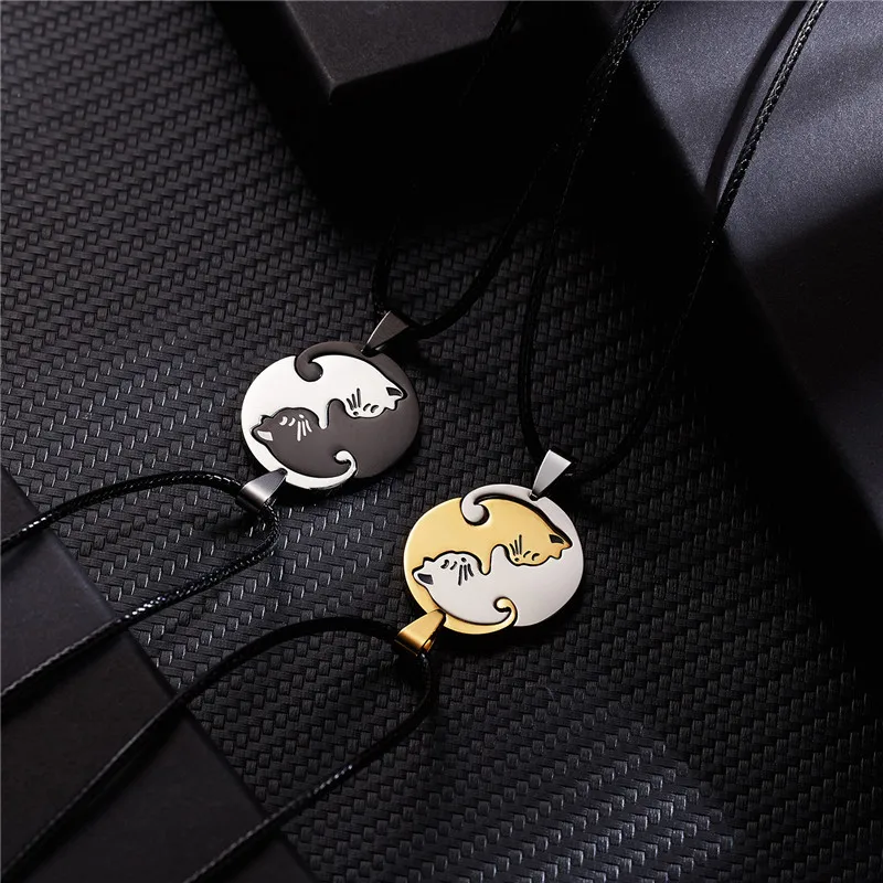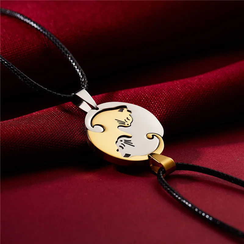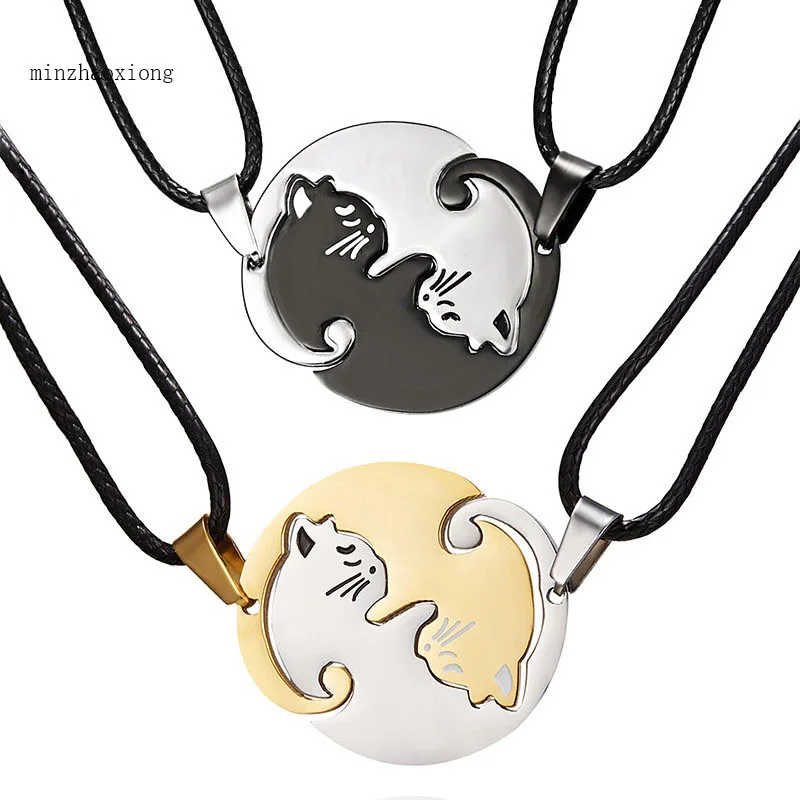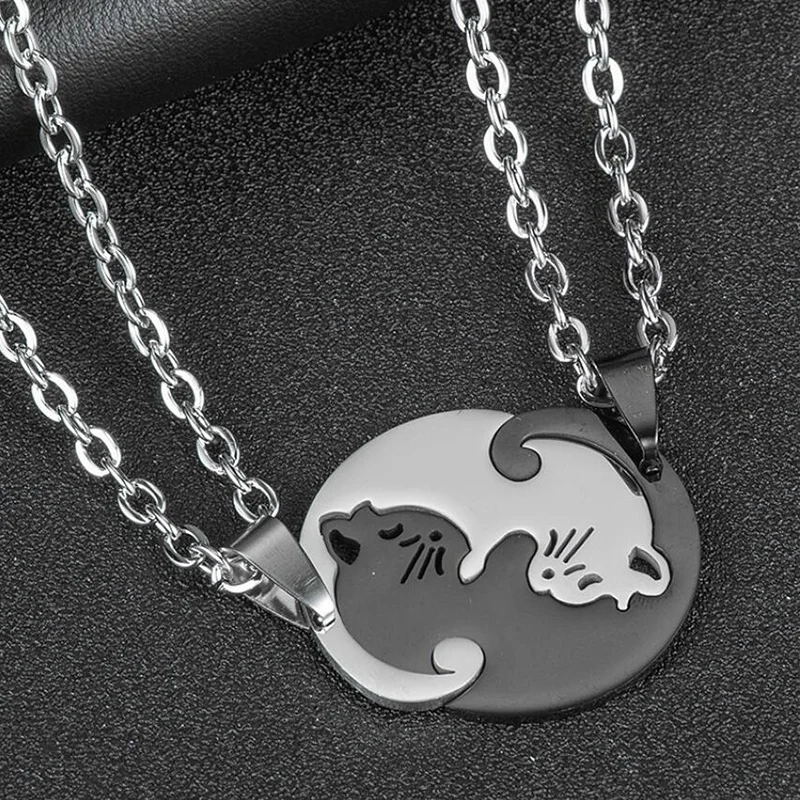 Парные подвески, ожерелье для пары кошек, черное, белое, круглое ожерелье из нержавеющей стали