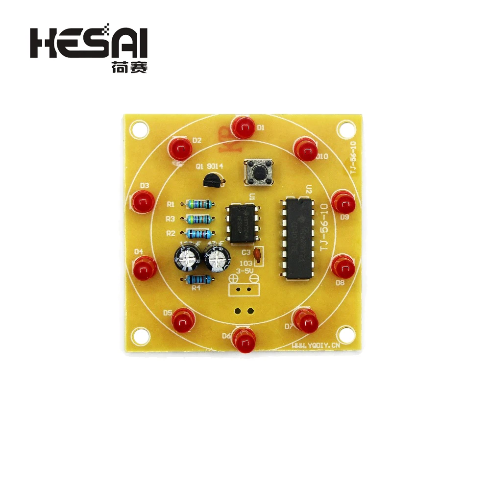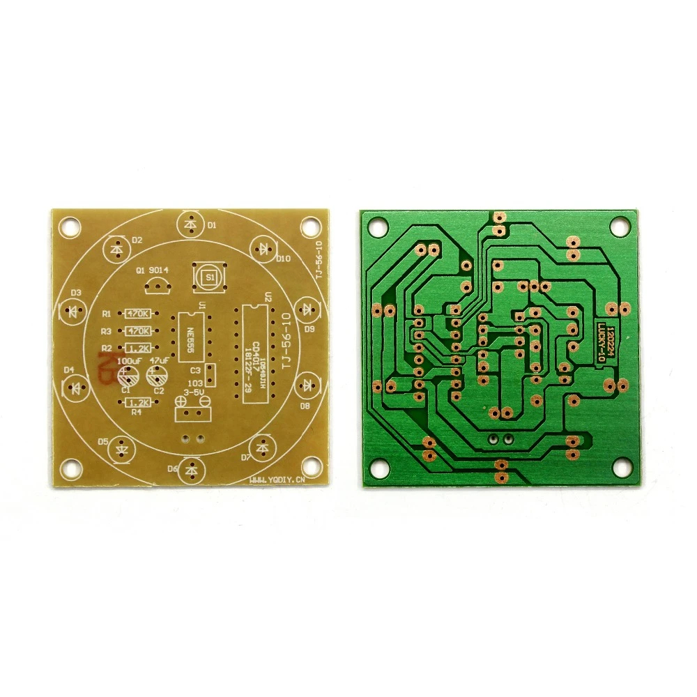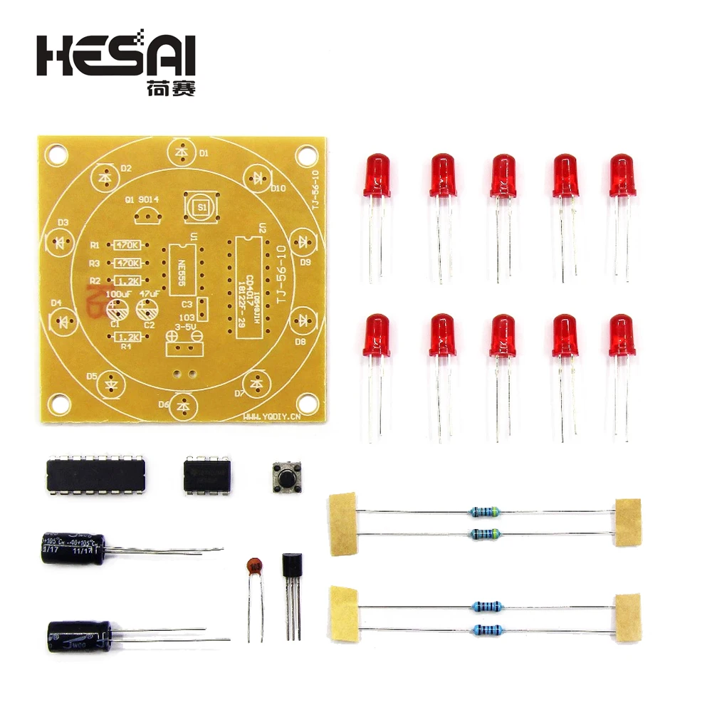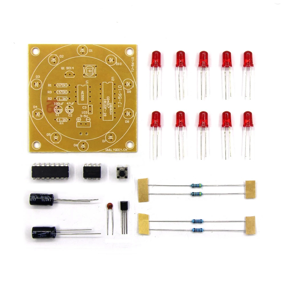 Принцип цепи: цепь в основном состоит из генератора импульсов и цепи десятичного счетчика. Импульсный генератор состоит из NE555 и периферийного компонента мульти гармонического генератора, когда кнопка Q1 нажата, S1, NE555 3-контактный выходной импульс, 10 выходов CD4017 превращает выход драйвера высокого уровня в светильник светодиодный Дов. После ослабления кнопки, и из-за наличия конденсатора C1 Q1 не сразу останавливается, при падении напряжения на обоих концах C1, в1 через программу постепенно ослабевает, три фута выходной импульсной частоты медленно, светодиодная движущаяся частота замедляется. В конце разряда С1. В1 отключение, NE555 3 фута больше не импульсный выход, светодисветодиодный перестает двигаться. Процесс "лотереи" завершен. Скорость светодисветодиодный да R2, C1 решил подождать время «лотереи».