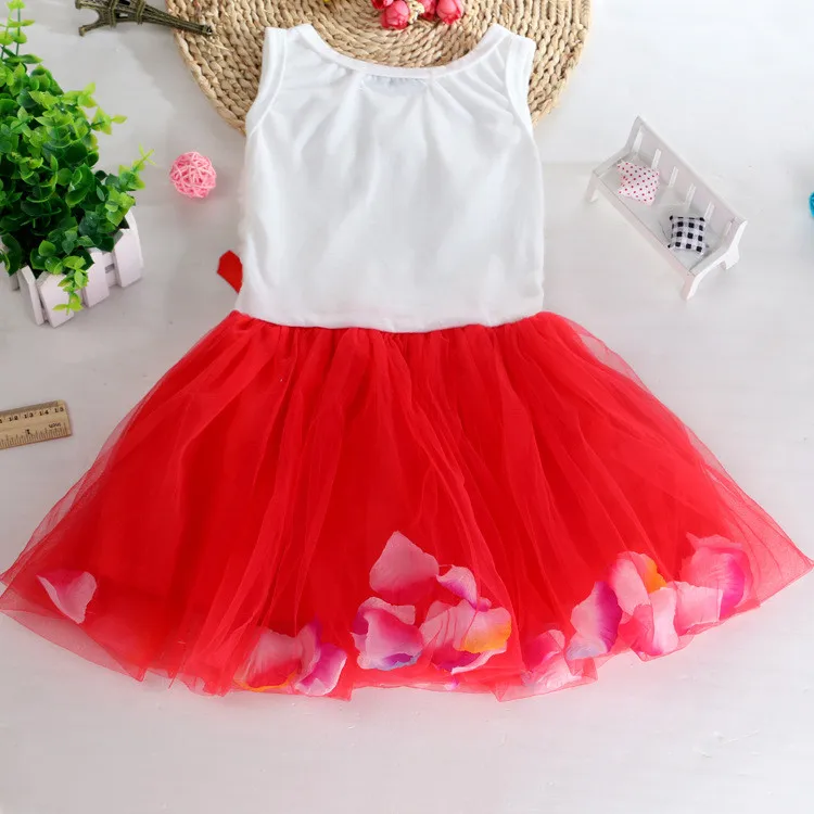 Летнее популярное платье одежда для маленьких девочек Сетчатое газовое платье с бантом и лепестками платье без рукавов в стиле принцесса милое новое платье для девочки 05 *