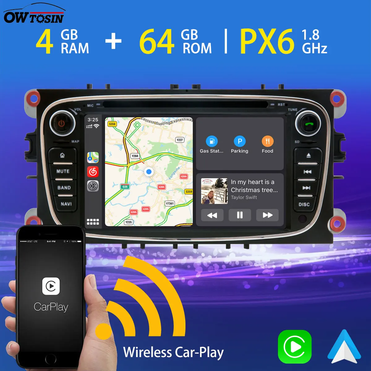 Android 10 PX6 4G + 64G Автомобильный DVD мультимедийный плеер для Ford Focus Mondeo S C Max Galaxy GPS навигация Радио Carplay TDA7850 DAB