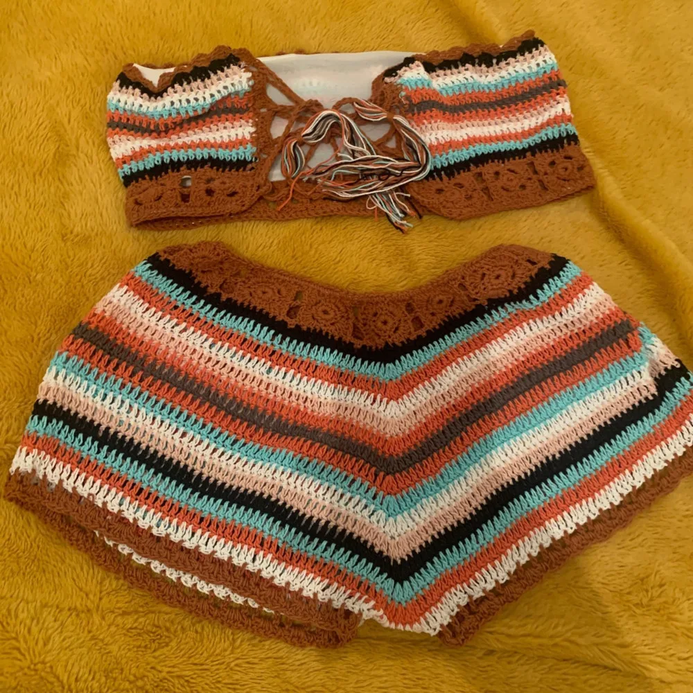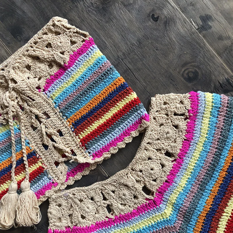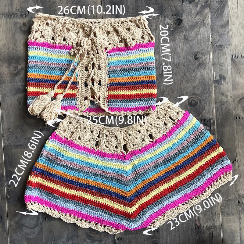 Женский пляжный комплект из двух предметов, пляжный комплект с вязаными кисточками и шортами в полоску, летний трикотажный комплект из 2 предметов