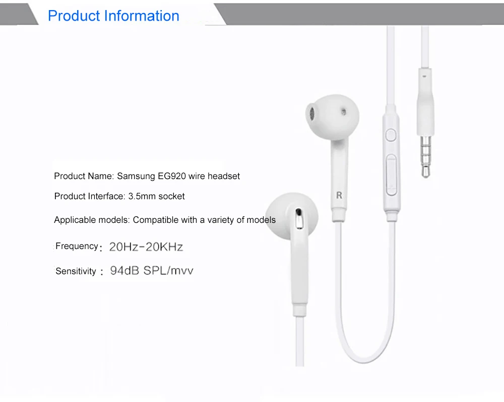 1. Бренд: Samsung2. Серия: eo-eg920bw3. Цвет: белый4. Подключение: Проводное5. Способ ношения: в ухе6. Интерфейс: 3,5 мм7. Длина: 1,2 м8. Функция: Для Galaxy S6 S7 Edge /S3/S4/S5 Note2/3/4/5/79. Функция 1: большинство смартфонов/ПК/планшетов/ноутбуков10. Функция 2: Для xiaomi5/xiaomi6/xiaomi note1/xiaomi note2/xiaomi note3/xiaomi rednoteХарактеристика:A. Прием и ответ на телефонные звонки через встроенный микрофон и ключ ответа. Проводной пульт дистанционного управленияРегулятор громкости (+ -)B. Конструкция шумоподавления в ушах, с эффектом шумоизоляции, качество звука еще более движется!Эргономичный дизайн одежды.C.3.5mm трехступенчатая позолоченная вилка, используется только в большинстве мобильных телефонов, чтобы гарантировать, что сигналПроцесс передачи без искажений качества звука, Подключите больше износа!Сладкий совет: Samsung eg920bw является 100% оригинальный Поддержка большинства телефонов на базе ОС Android смартфон, некоторые функцииМожет не поддерживать IOS (ответ/регулятор громкости)! Мы благодарим вас за это, прежде чем выСделайте заказ, спасибо!Посылка:1 * Samsung eo-eg920bw гарнитуры (белый)