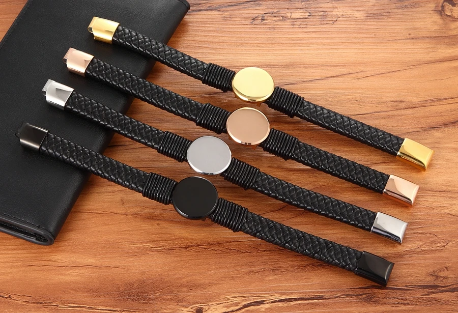 Круглый Большой аксессуар, мужской роскошный кожаный браслет, Многоцветный выбор, черный кожаный ручной работы, классический подарок на день рождения, распродажа