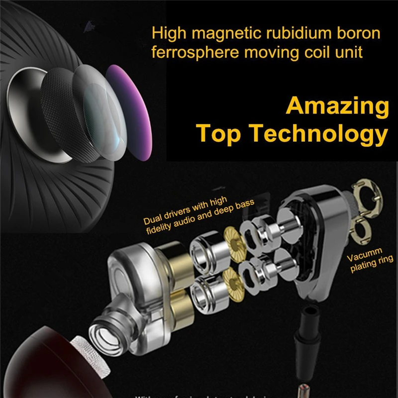 Двойной драйвер Hi-Fi наушники стерео Бас 3,5 мм проводной In-Ear H...