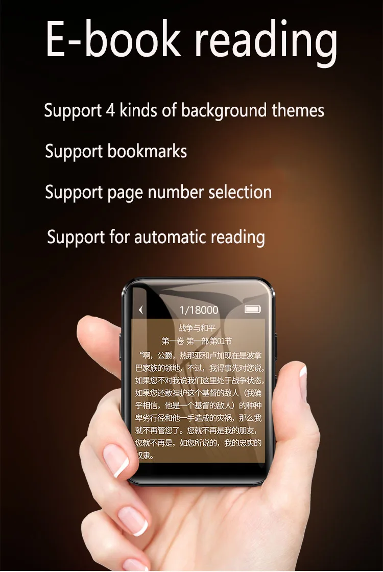 Материал корпуса: металлический каркас плеера, пластиковый корпус задней панелиДисплей: 1,8 дюйма, разрешение 320*240Клавиша управления: сенсорнаяПамять:Память: плеер не имеет памяти и необходимо вставить карту памяти, прежде чем ее можно использовать.Расширение Tfcard: максимальная поддержка-расширение карты 128gtf.Версия Bluetooth: 5,0. Можно подключить Bluetooth-гарнитуру и Bluetooth-динамик.Музыкальные форматы: ape, FLAC, AAC, MP3, WAV и другие форматы поддерживаются,Эквалайзер: Да, вы можете выбрать 6 музыкальных стилей. Рок, фанк, шифутон, джаз, классика, Электроника.Режим воспроизведения: многократное воспроизведение и случайное воспроизведение, круговое воспроизведение. Вы можете продолжить Последнюю игру.Видео: Поддержка видео в формате avi с разрешением 320*240. Формат видео необходимо преобразовать через видеоконвертер, мы можем предоставить видеоконвертер.A-B Повтор: Да. Повторите до 10 раз. Максимальный интервал повторения составляет 10 секунд.Воспроизведение с переменной скоростью: поддерживается. 8 уровней воспроизведения с регулируемой скоростью.Запись: поддержка. Формат записи wav.Радио: поддержка. Гарнитуру необходимо подключить в качестве антенны, которая поддерживает диапазон частот 87-108 мгц. Поддерживает FM-запись, автоматическую настройку, ручную настройку и сохранение каналов.Электронная книга: поддерживает формат TXT, автоматическое воспроизведение, автоматическое воспроизведение времени, размер шрифта, цвет фона и удаление электронной книги плеером. Вы можете выбрать количество страниц. Закладки поддерживаются.Язык:Поддержка китайского и английского языков.Календарь: ПоддержкаСекундомер: ПоддержкаБудильник: поддержкаИзображение: ПоддержкаПосылка1 mp3-плеер1 * USB кабель1 * гарнитура1 * Инструкция по эксплуатацииОбратите внимание: bluetooth MP3-плеера не совместим с компьютерами и телефонами!В комплект входит только указанное выше содержимое, другие продукты в комплект не входят.Примечание: светильник вая съемка и различные дисплеи могут привести к тому, что цвет товара на изображении будет немного отличаться от реального. Допустимая погрешность измерения +/- 1-3 см.Специальное напоминание: мы загрузили несколько фотографий реальных объектов на последней стороне введения продукта. Нет освещения и украшения. Я надеюсь, вы сможете обратиться к нему при покупке.
