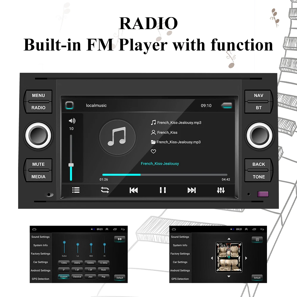 Транзит из 2005Фиеста С 2005 годаФокус/Focus2 2005 ~ 2007Галакси 2005 ~ 2007Мондео 2003 ~ 2007Фьюжн 2006 ~ 2011Kuga 2008 ~ 2011C-Max 2007 ~ 2009S-Max 2007 ~ 2009Подключение 2007 ~ 2009Особенности:1. Модернизированная система зеркального соединения: IOS/Android mirror linkIOS airplay:IOS поддерживает мобильный телефон одностороннюю проекцию на машинуДвусторонняя версия Android: Android поддерживает двустороннее соединение мобильный телефон2. Встроенный Bluetooth 4,0 с A2DP/Hands Free/Телефонная книгаПоддержка звонков в режиме громкой связи по BluetoothМузыкальный плеер BluetoothАвтоматическая загрузка телефонных книгАвтоматическая загрузка записей3. Встроенный WIFI: Подключитесь к WIFI, и вы найдете новый мир, самый удобный-онлайн-карта.4. Обучение рулевому колесу: через него вы можете управлять необходимыми вам функциями рулевым колесом, более удобно5. Встроенный GPS-приемник, совместимый с Waze/Navfree/Google Map и т. д.: с тех пор, пока есть место назначения, вы можете отправиться куда угодно и никогда больше не затеряться!6. Высокое разрешение: 1024P Full HD дарит вам Фантастические ощущения от просмотра HD-видео7. Функция ввода камеры заднего вида: необходимо выбрать камеру, автомобиль подключен к реверсивной передаче для автоматического переключения (требуется дополнительно)8. Поддержка регулировки логотипа экрана загрузки, виды логотипов автомобиля могут быть изменены на выбор самостоятельно9. Выбор различных звуковых эффектов эквалайзера10.FM-радио: вы можете слушать трафик в реальном времени, новостные борадслепки, прогнозы погоды и т. д., так что утомительное Вождение не монотонноОсобенности:Чип усилителя: TDA7388Оперативная память: 1 ГбПЗУ: 16 ГбЭкран: емкостный сенсорный экранРазрешение экрана: 1024*600Радио: FM (без RDS)Радиочастота: 87,5 ~ 108 МГцМаксимальная выходная мощность: 4*45 Вт (макс.)Язык: китайский/английский/французский/немецкий/русский/испанский/итальянский/Португальский/турецкий и т. д.Аксессуары:1 x плеер Android1 Антенна GPS2 x Жгут питания1 x Руководство пользователя2 x USB-кабеля1 кабель RCA1 x радио антенна1 x вход для камеры