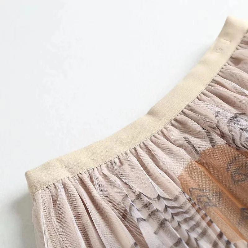 Женская длинная фатиновая юбка с принтом, черная, белая, розовая пляжная юбка с поясом на резинке, размера плюс, WF0091