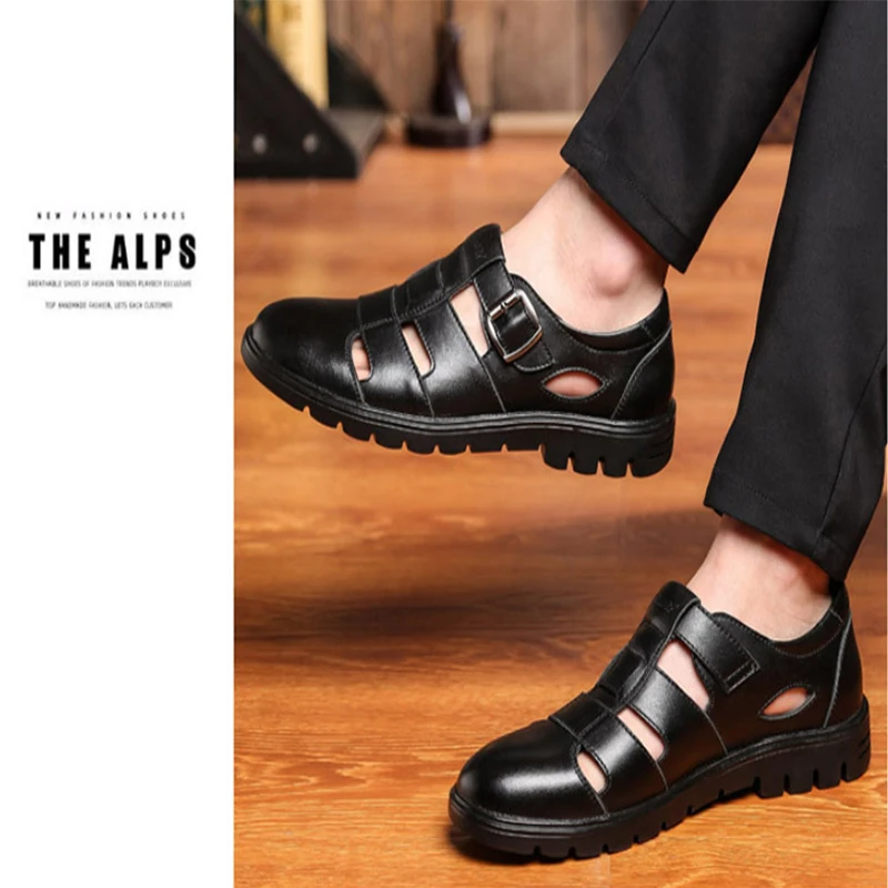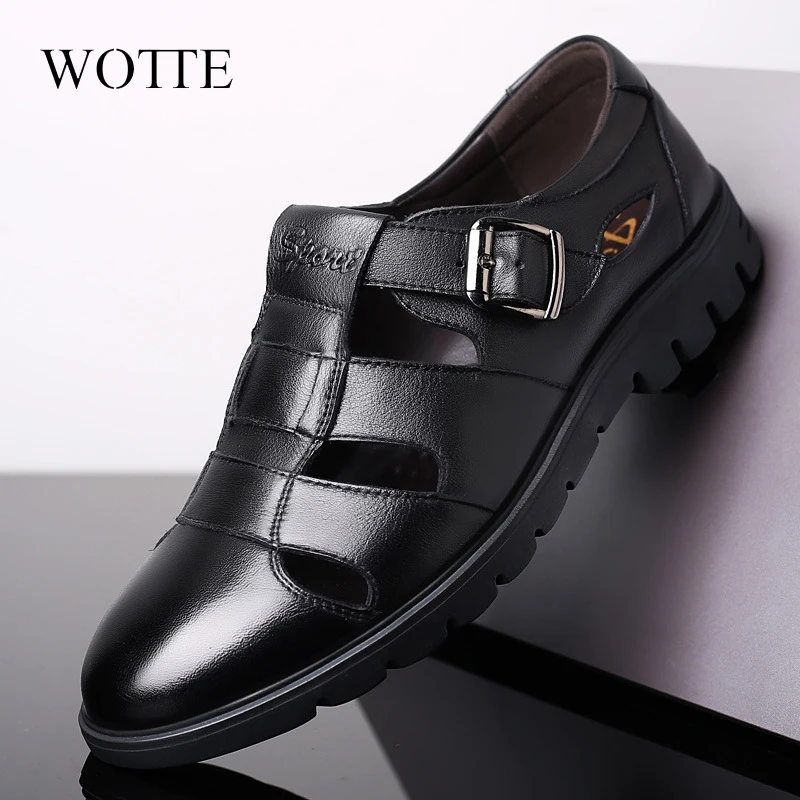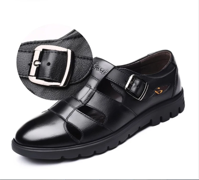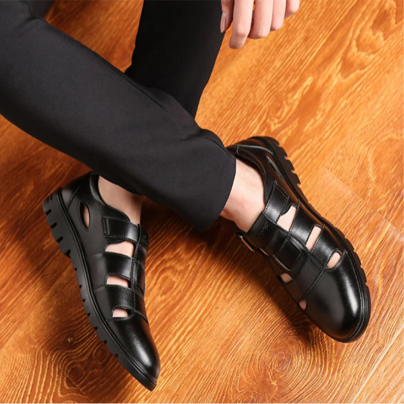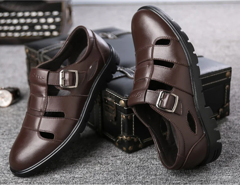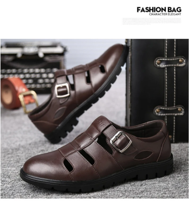 Сандалии мужские из натуральной кожи, Уличная Повседневная обувь для пляжа, римские туфли, размера плюс 38-46