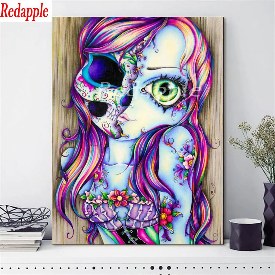 Полный Круглый/квадратный дрель 5d алмазная живопись мультфильм череп большой глаз Девушка Алмазная Искусство Стразы 3d вышивка декор из алмазной мозаики