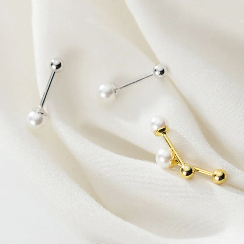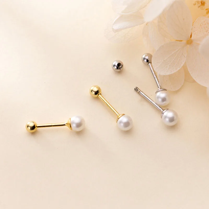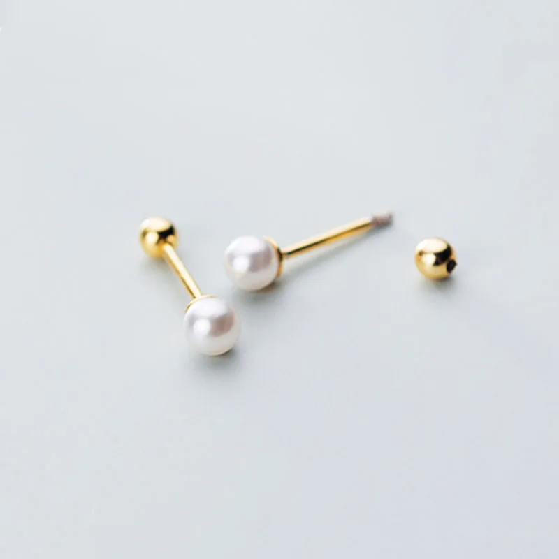 Серьги-гвоздики женские из серебра 925 пробы с жемчугом и винтом