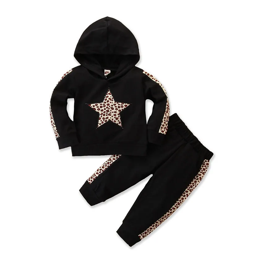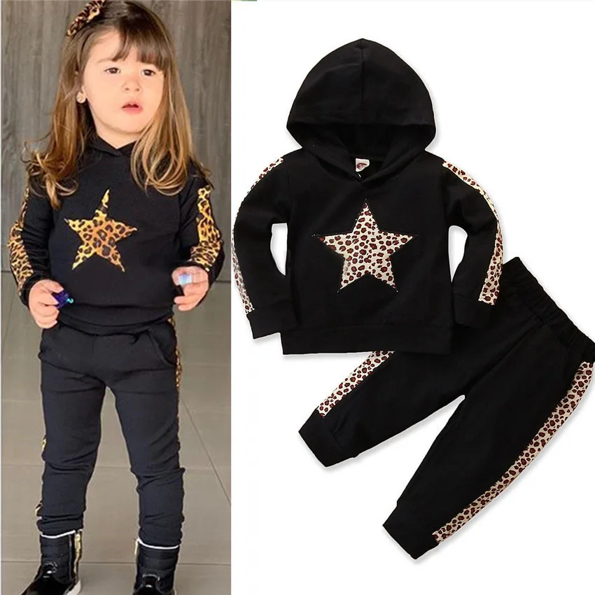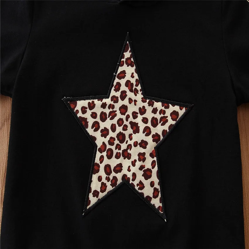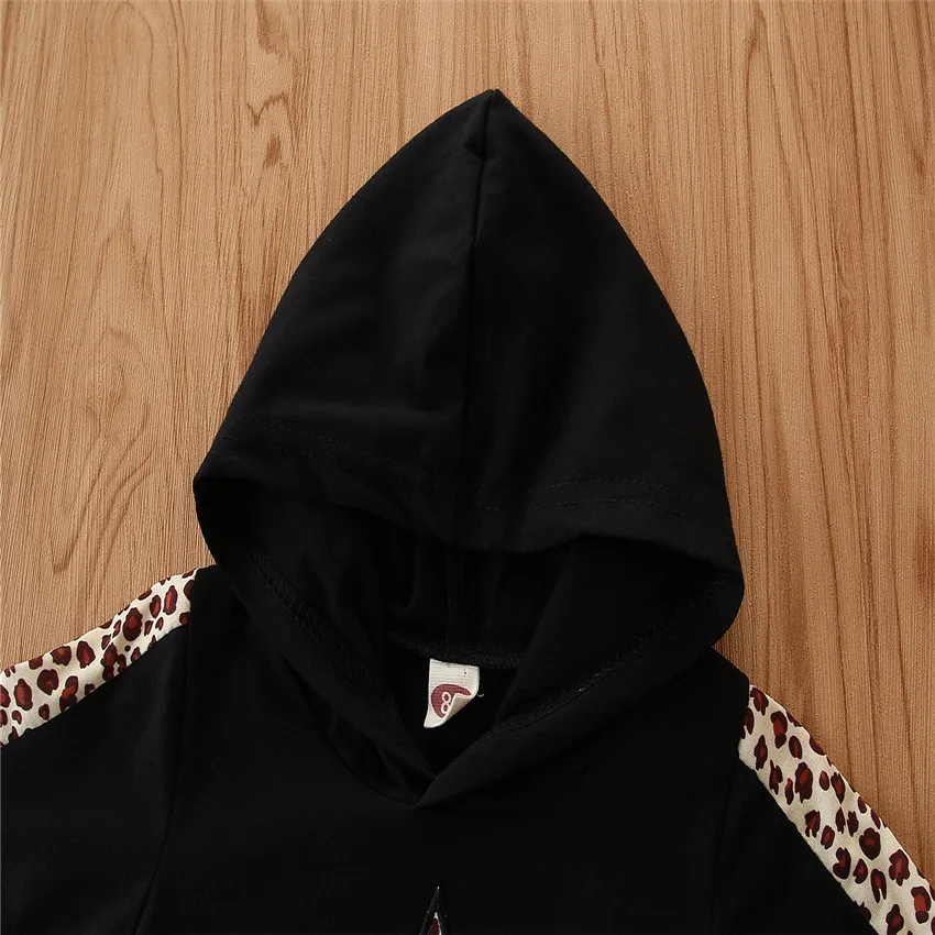 Модная футболка с капюшоном с длинным рукавом и леопардовым принтом + штаны