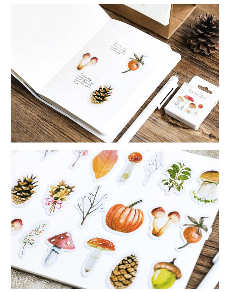 46 шт.кор. наклейка в виде дневника с осенним лесом, милые наклейки...
