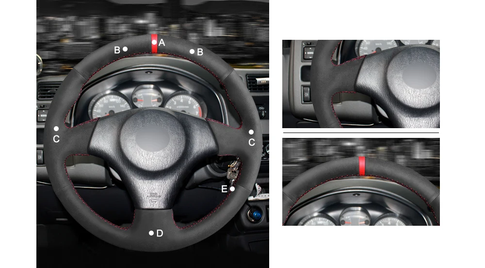 Черный замшевый красный маркер DIY чехол рулевого колеса автомобиля...