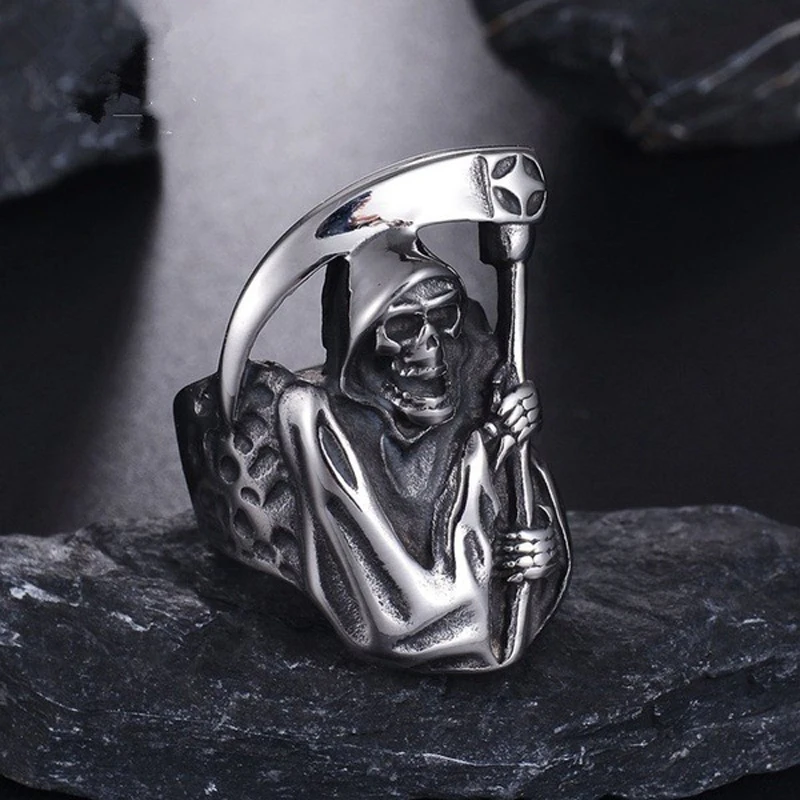 Кольцо с черепом в готическом стиле для мужчин и женщин, винтажное Ювелирное Украшение из сплава в стиле панк, скелет мрачного Жнеца на годовщину