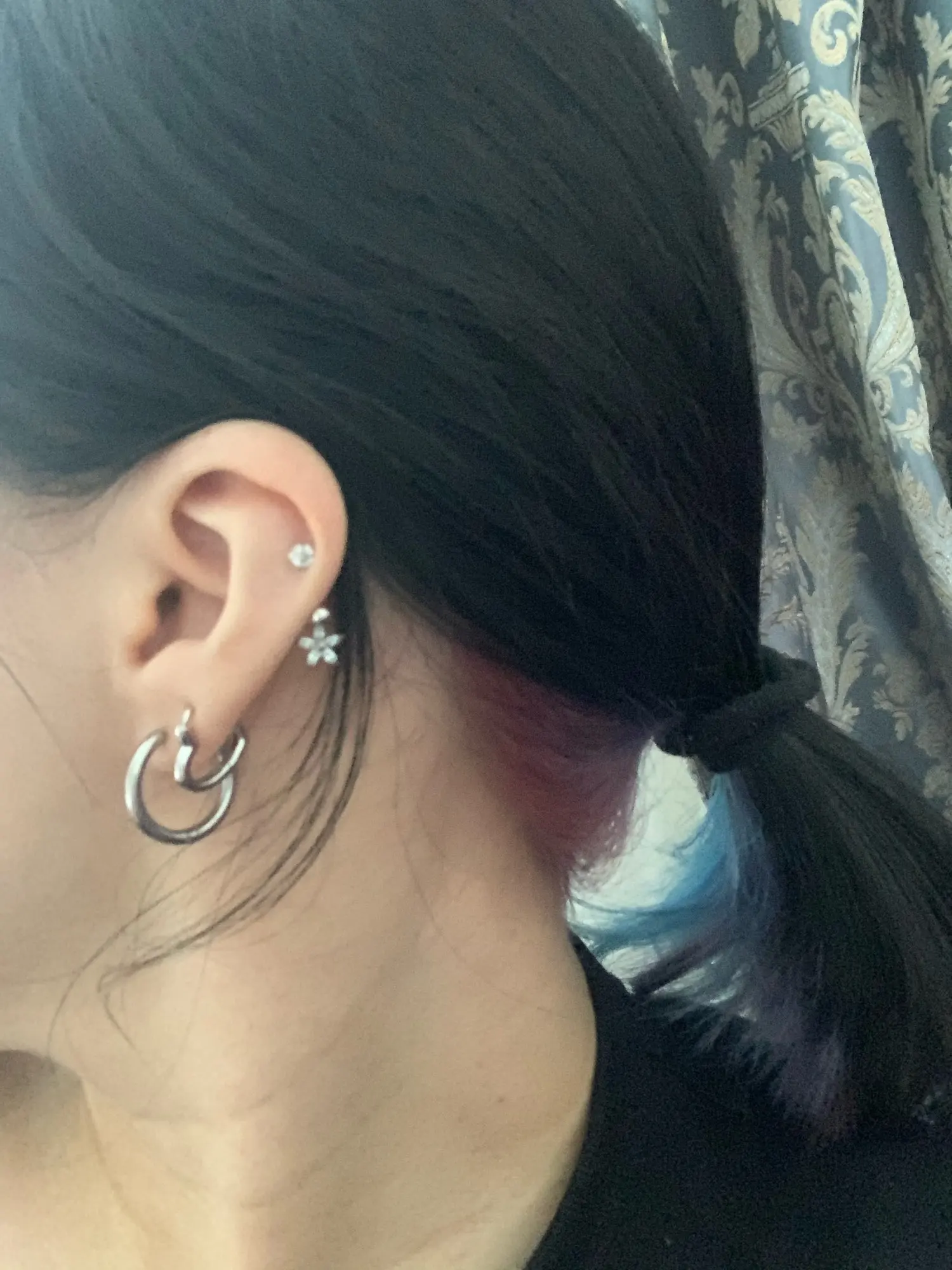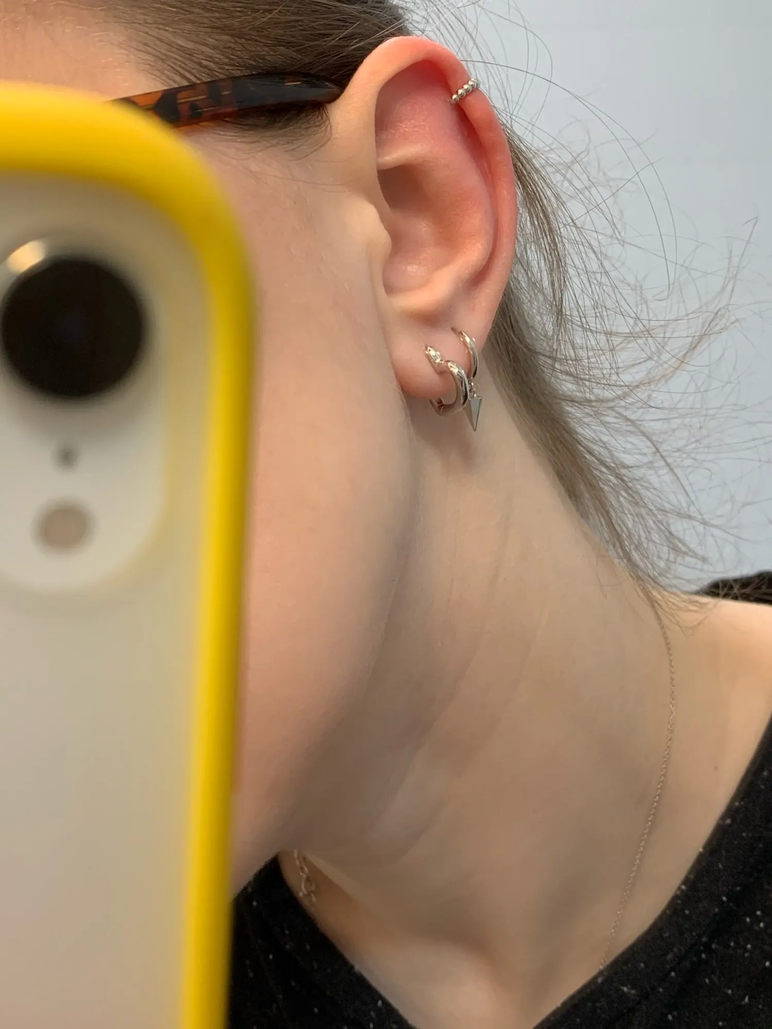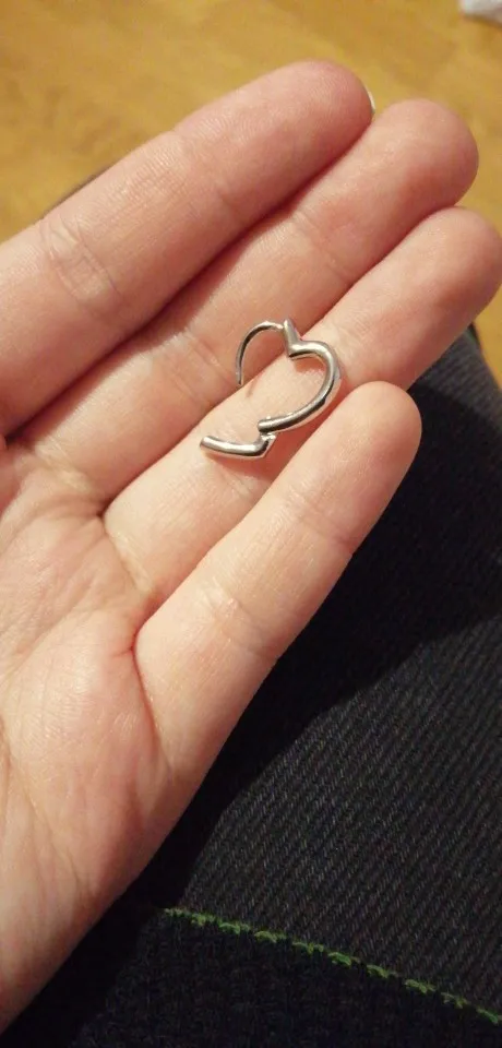 Серьги точно такие же, как на картинке! Может быть немного толще, чем у пенсаси, но они и мне нравятся. Они очень красивые и очень хорошо подходят для пирсинга. Немного великоват для л 'спирали, но это личные предпочтения.