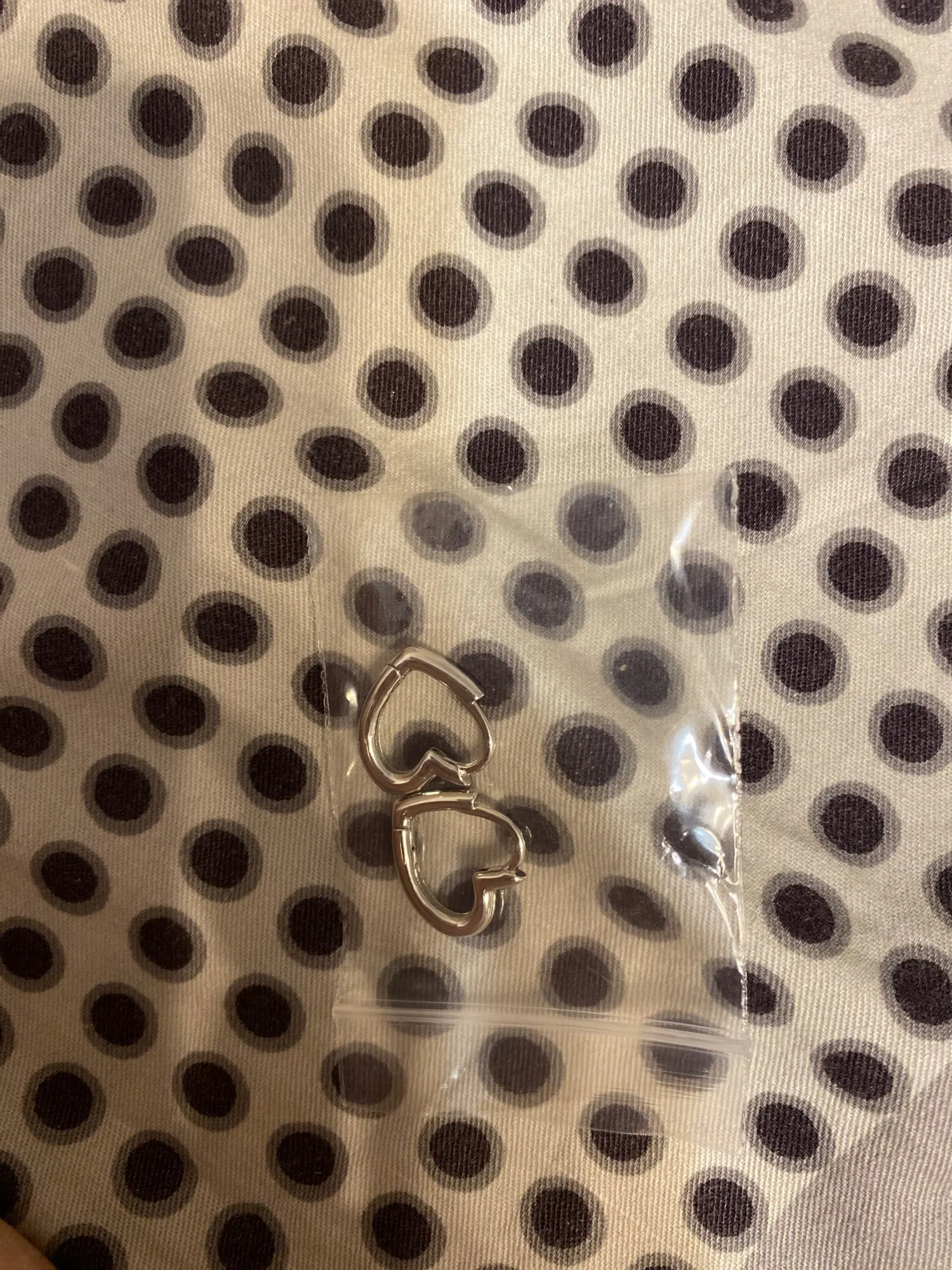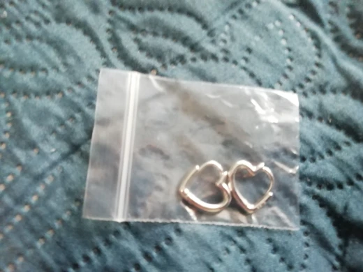 К сожалению моя собака съела эти сережки и я не успела их сфоткать, однако сережки очень милые, приятный замочек. На самом деле не очень видно что это сердечки