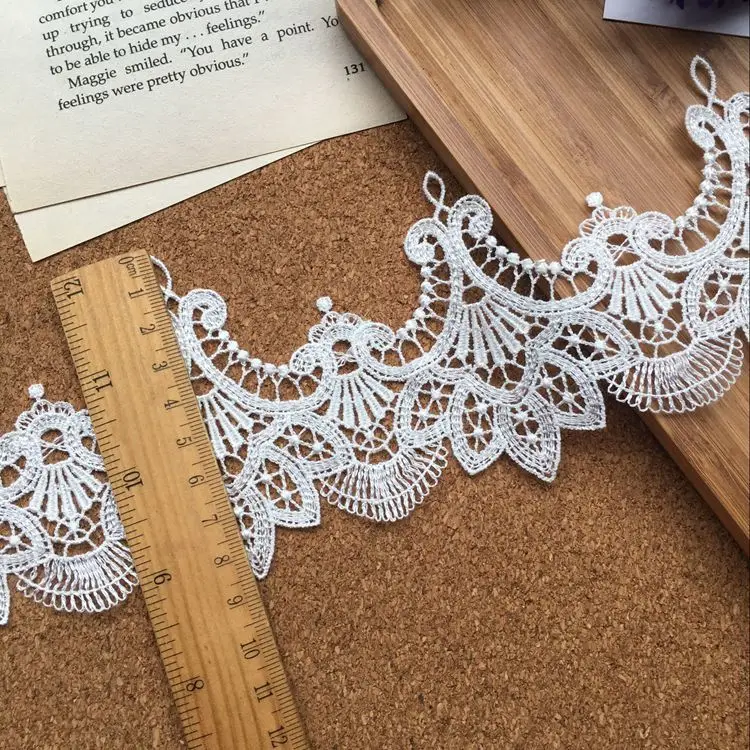 Кружевная ткань с вышивкой, 1 ярд, 8,5 см, белая кружевная лента, занавеска, гипюр, кружевная отделка, сделай сам, шитье, отделка для платья, декор X105