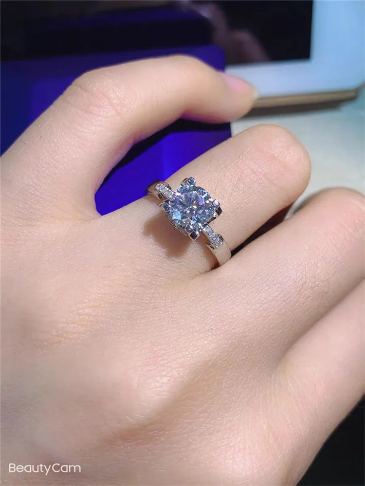 925 пробы серебро прошел алмаз Тесты идеально Муассанит 1ct кольцо ...