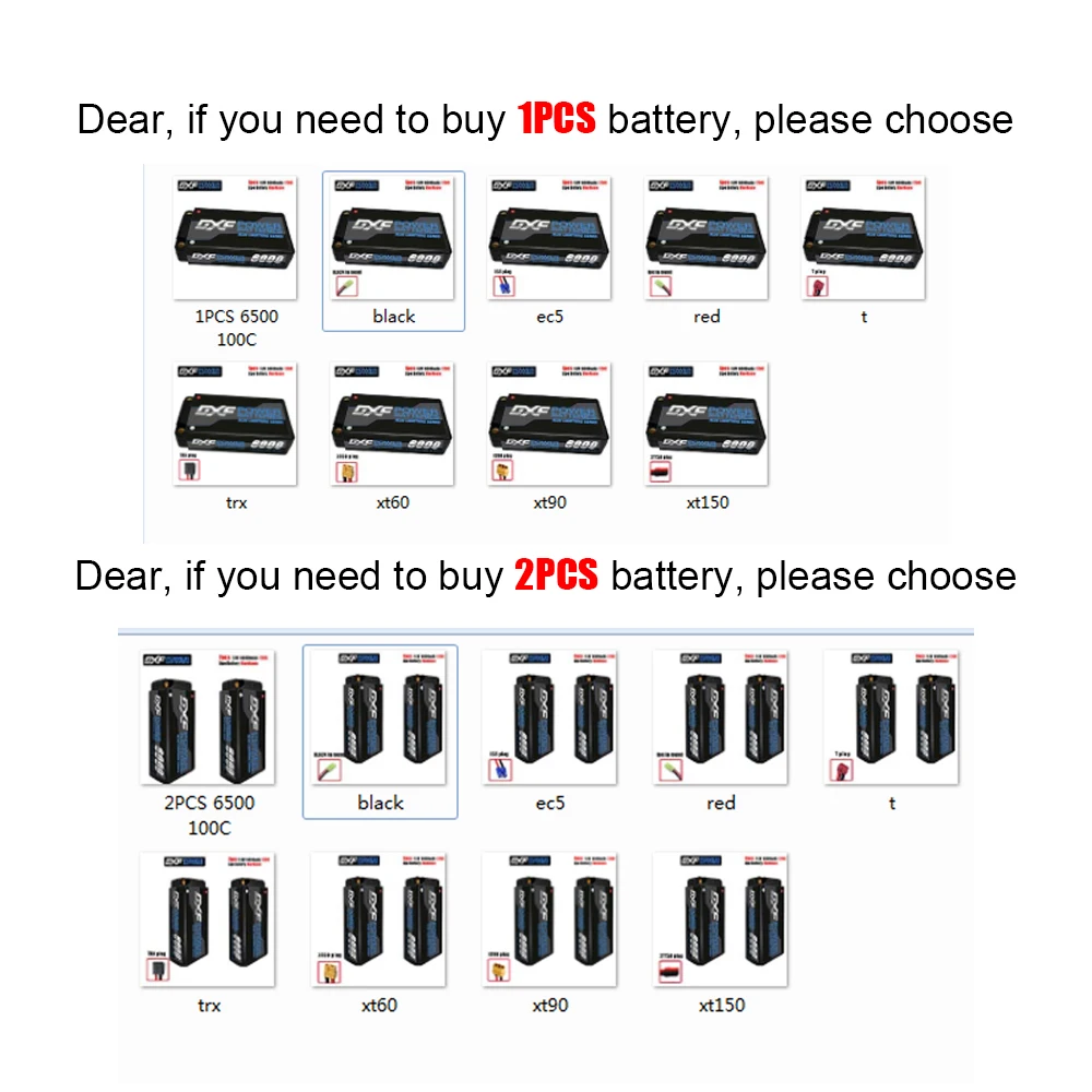 2x6000mAh 7,6 V 120C5 ммБатарея LipoИли1x6000mAh 7,6 V 120C5 ммLipo батарея (вилка на основе вашего выбора)