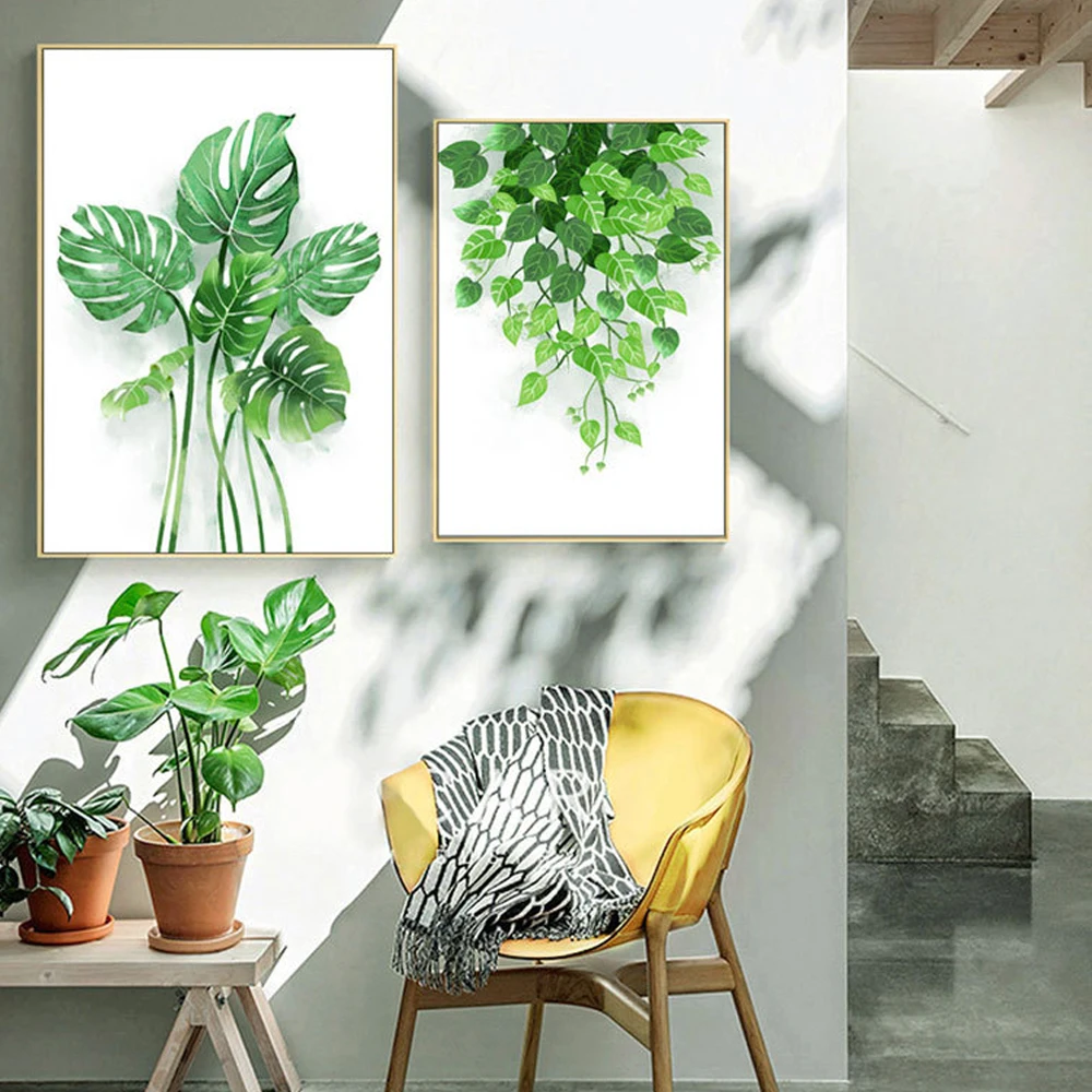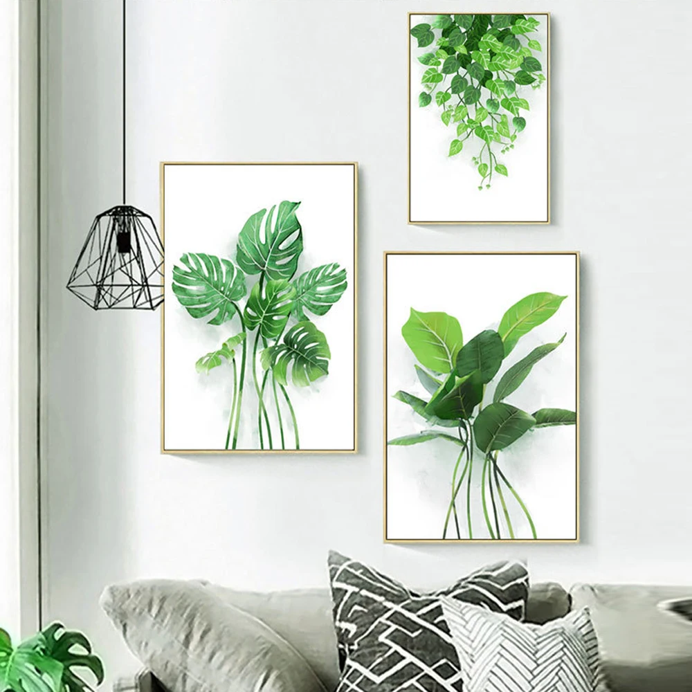 Маленькое свежее зеленое растение, холст, картина, нордический минималистический лист, паук, растения, плакаты, настенные картины для гостиной, домашний декор