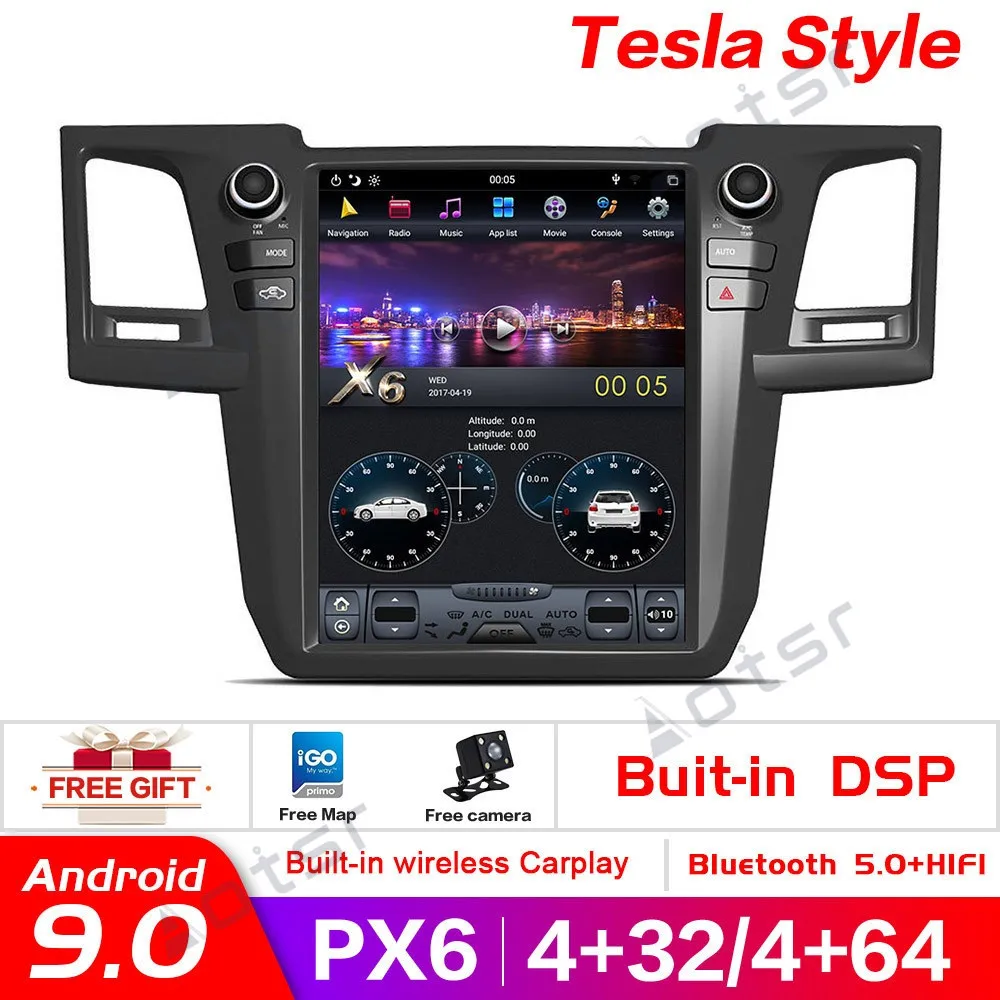 Автомобильный GPS-навигатор, Android 9, вертикальный экран в стиле Tesla, головное устройство для Toyota Fortuner 2007-2015, мультимедийный проигрыватель, магнитофон
