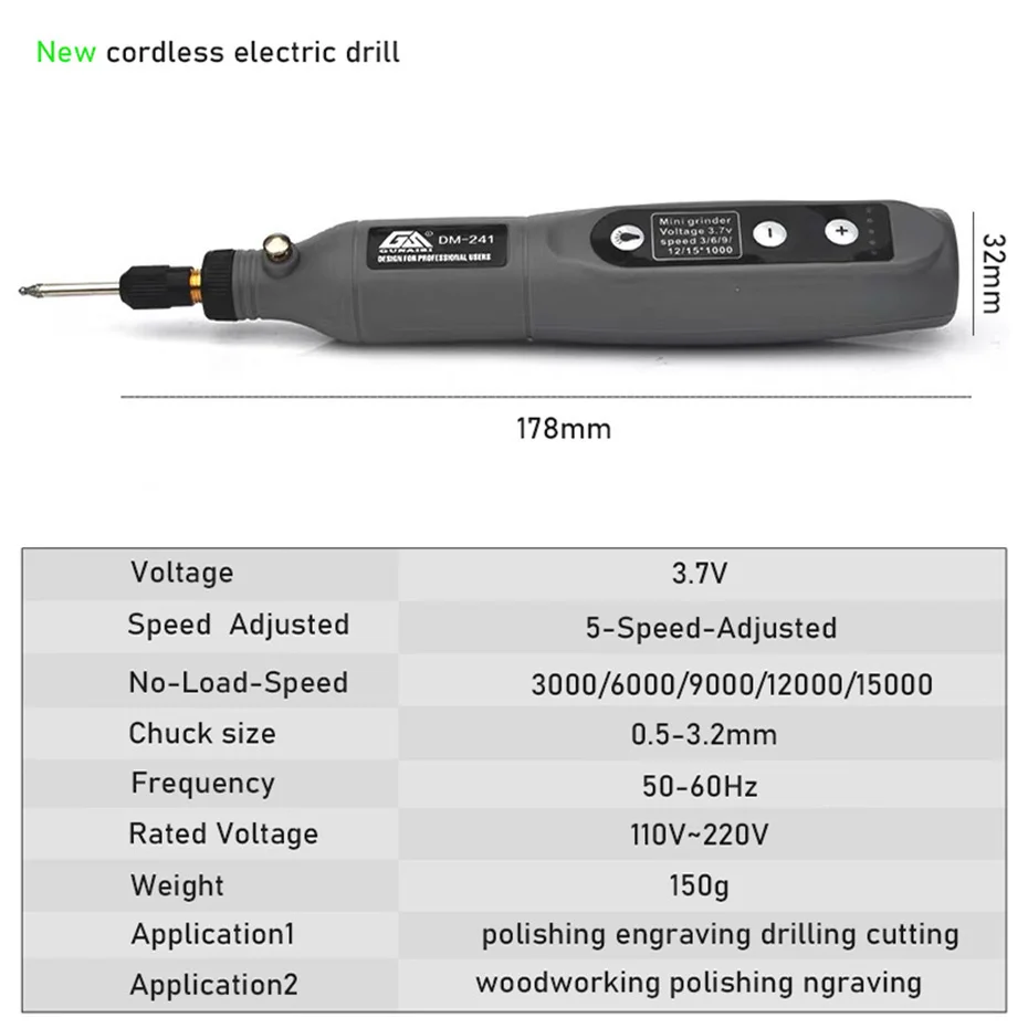 Мини-дрель электрическая, беспроводная, 3,6 В, USB-зарядка