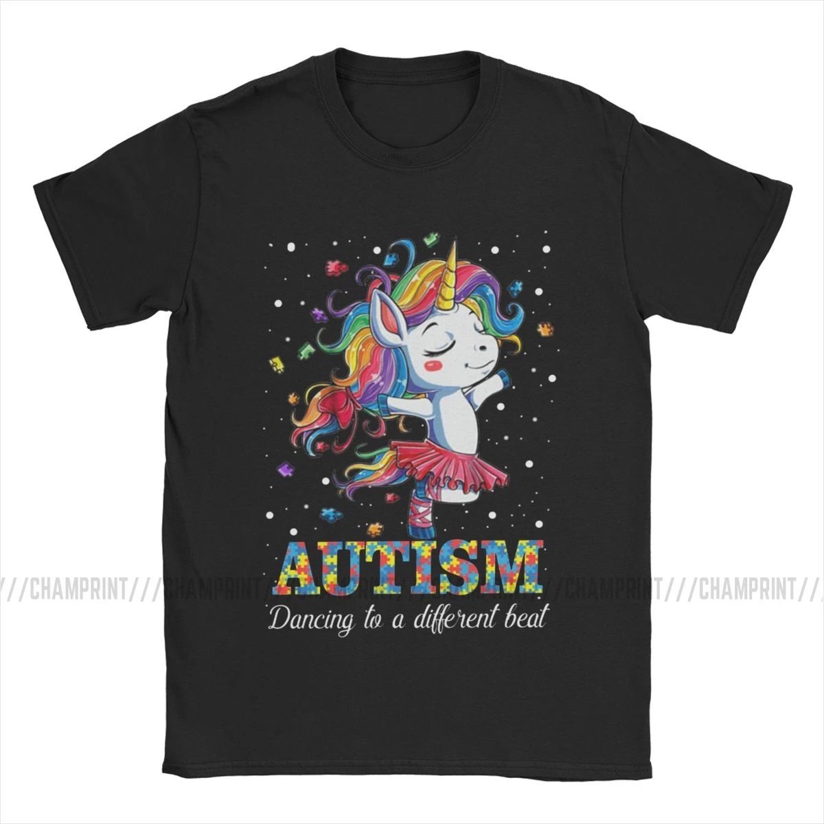 Аутизма танцы на другой Beat Единорог футболки для мужчин 100% хлопок в винтажном стиле, футболка с круглым вырезом и Autismo аутистов осведомленности футболки для девочек