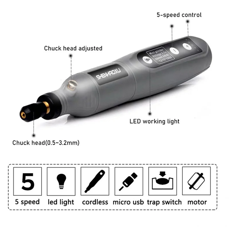 Электрическая беспроводная дрель, электроинструменты, 3,6 В, набор аксессуаров для шлифовки, ручка для гравировки с 5-ступенчатой регулируемой беспроводной светодиодсветильник кой