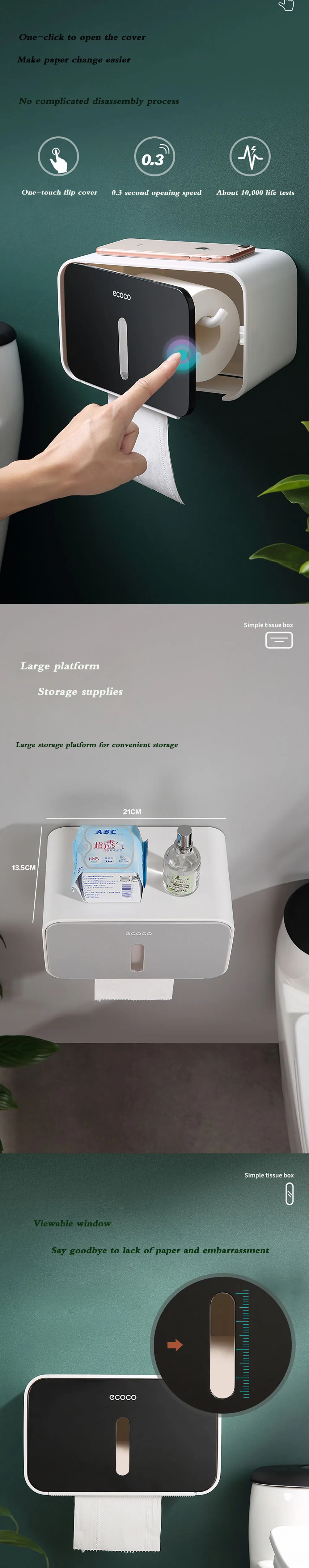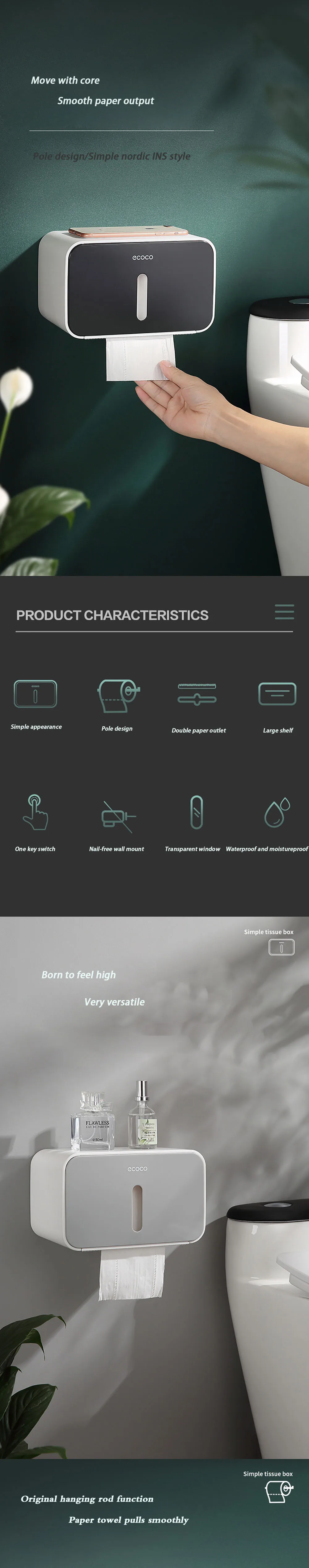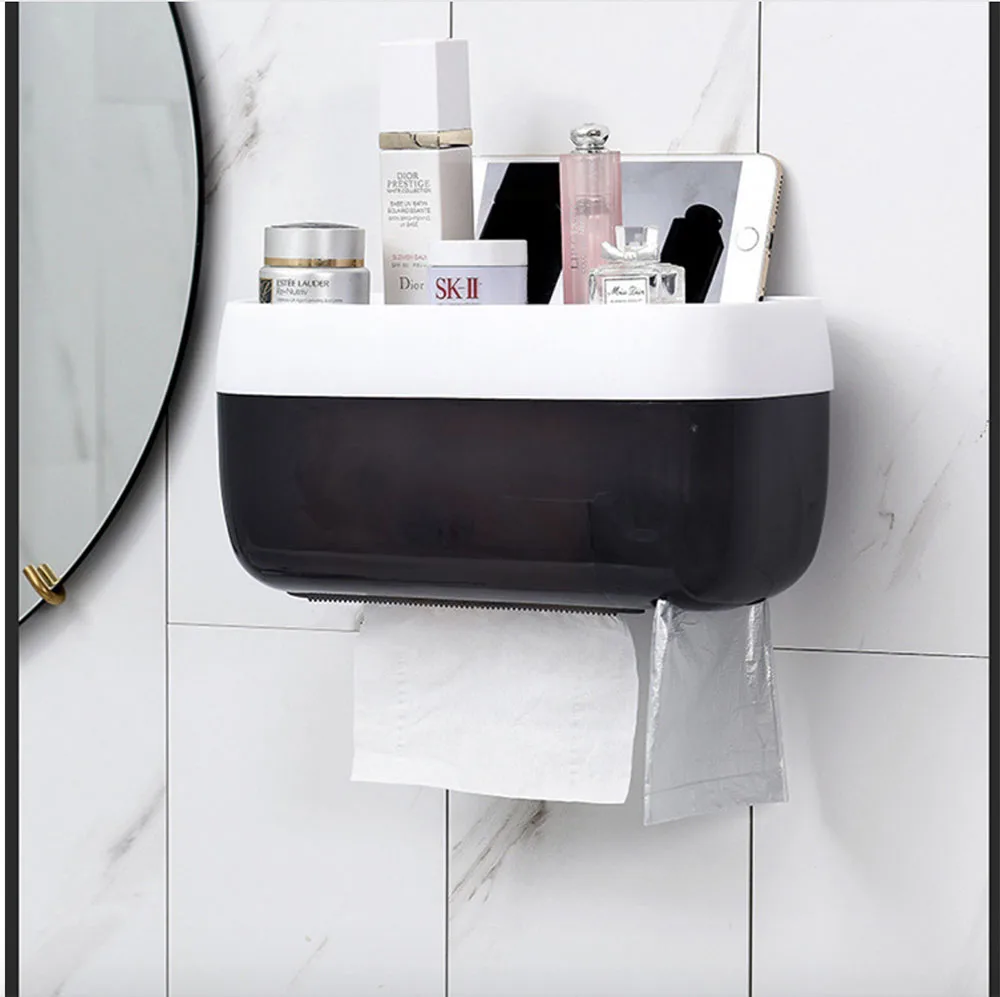 Держатель для туалетной бумаги, настенный ящик для хранения полотенец, аксессуары для ванной комнаты, лоток, рулонная трубка, не требует перфорации, двухслойный