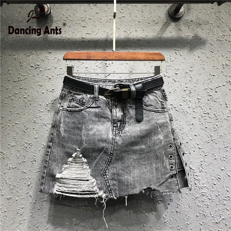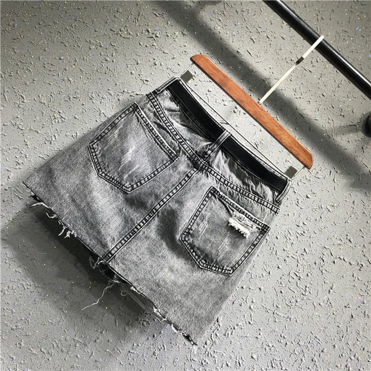 Женская джинсовая юбка-трапеция с высокой талией, свободные шорты большого размера в Корейском стиле, Офисная рваная юбка, весна-лето 2020