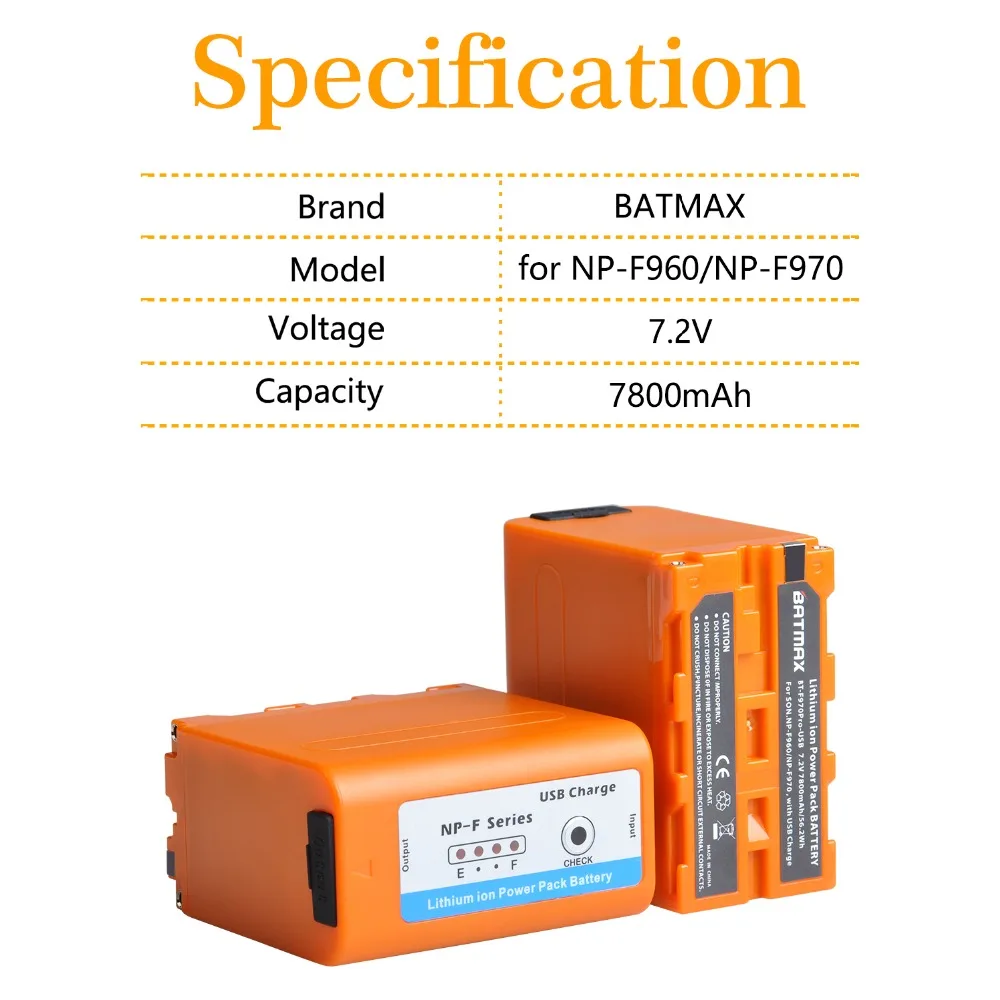 Batmax 7800 мАч NP-F960pro NP-F970pro F960 F970 батарея с usb-выходом для зарядки Sony PLM-100 CCD-TRV35 MVC-FD91 MC1500C L50