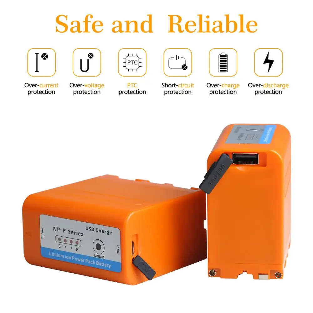 Аккумулятор оранжевого цвета NP-F960, NP-F970, F960, F970, с выходом USB для зарядки Sony PLM-100, CCD-TRV35, MVC-FD91, MC1500C, L50