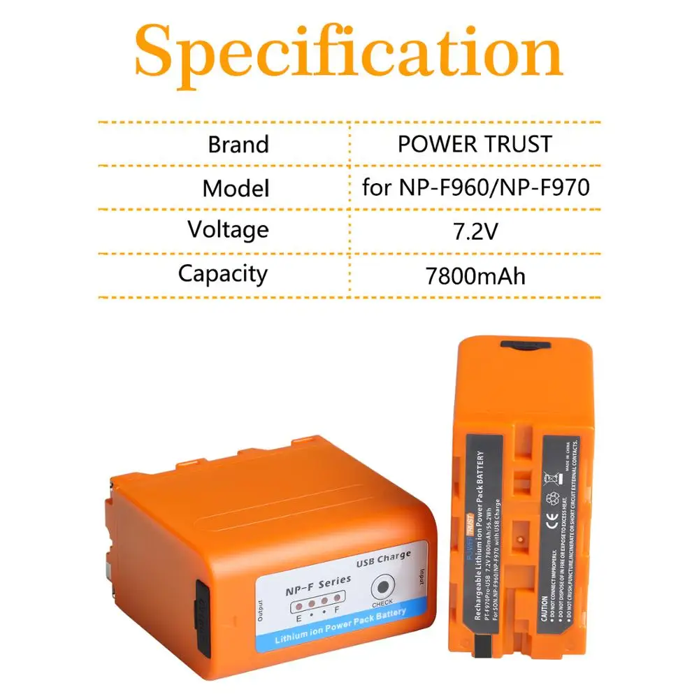 Аккумулятор PowerTrust 7800 мАч NP-F960pro NP-F970pro F960 F970 с USB-выходом для зарядки для Sony PLM-100 CCD-TRV35 MVC-FD91 MC1500C L50