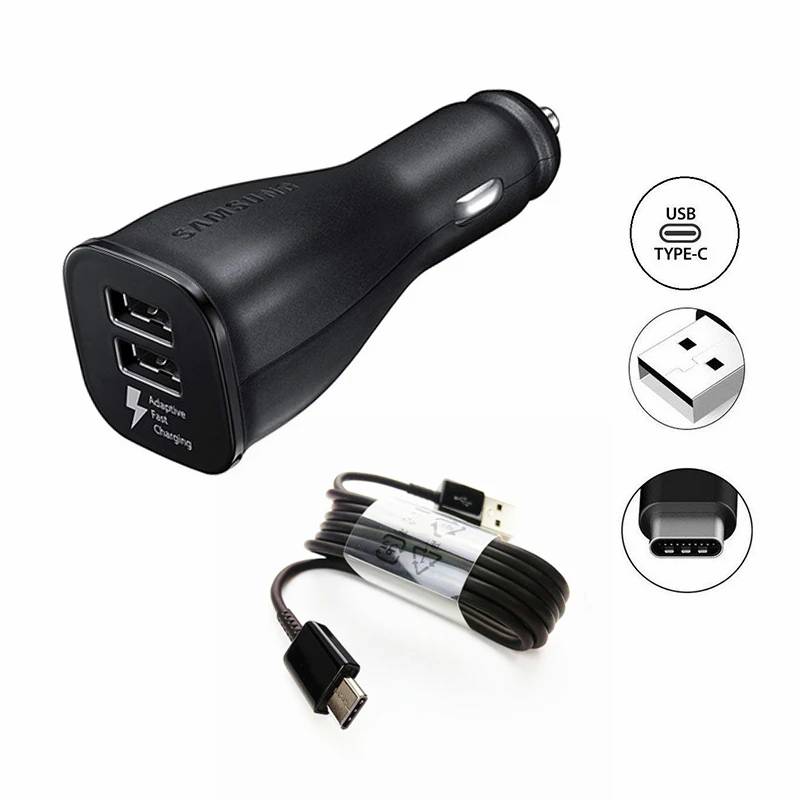 Автомобильное зарядное устройство Samsung с двумя USB-портами и кабелем MicroType C для Galaxy S6 S7 S8 S9 S10 Note 10 Plus A70 A50 Note 9 8 5