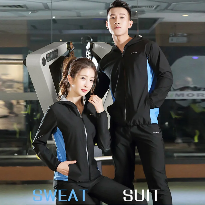 Мужскойженский спортивный костюм для фитнеса, толстовка с капюшоном и штаны для потери веса, свитшот для тренировки в тренажерном зале