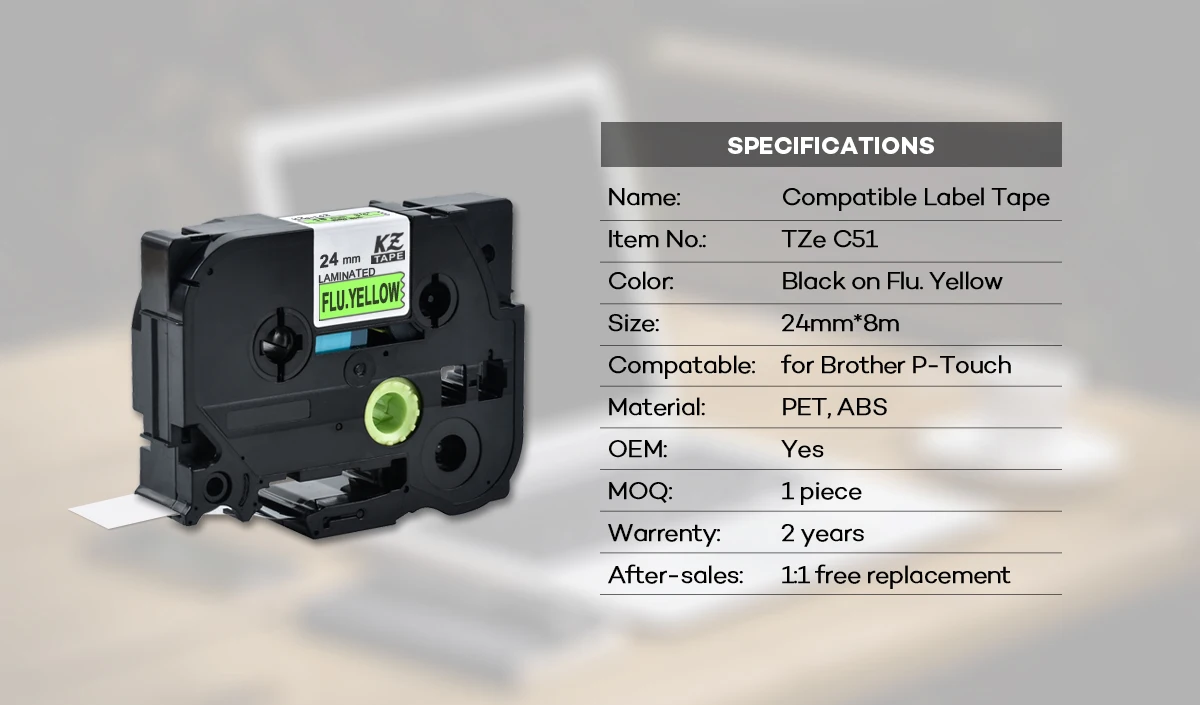 24 мм TzeC51, черный на гриппе. Желтая Магнитная лента, магнитная лента, фотолента C51 tzeC51 для P-touch PT