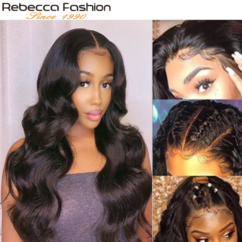 Волнистые парики Rebecca 13x4 с фронтальной сеткой, натуральные волосы Remy, могут быть окрашены, отбеленные узелки, бразильские волнистые парики из натуральных волос