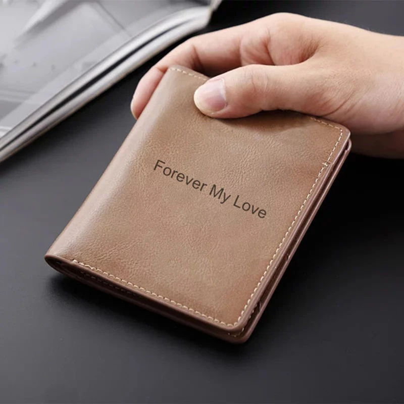 Мужской Ультратонкий кожаный кошелек с надписью на заказ