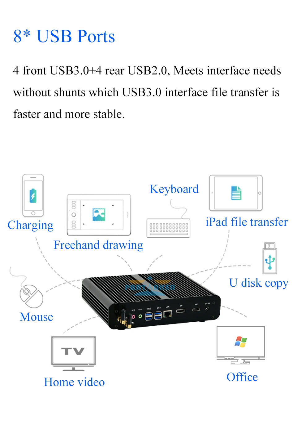 Универсальная производительностьМини-ПК, совместимые практически со всеми основными операционными системами, такими как Windows, Linux. Вы можете использовать этот мини-компьютер дома в качестве персонального компьютера или в качестве HTPC для создания собственного центра домашнего кинотеатра. Кроме того, вы можете использовать его в офисах, учебных центрах, фабриках, кибер-кафе и везде, где нужны компьютеры.