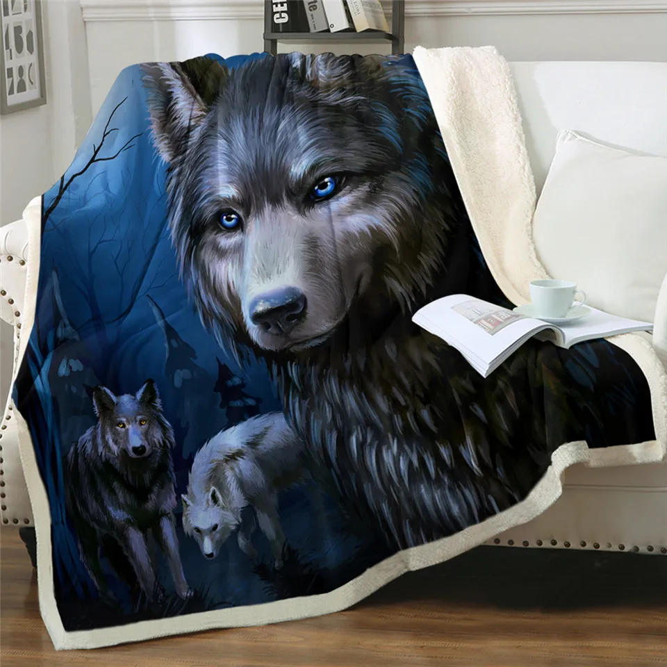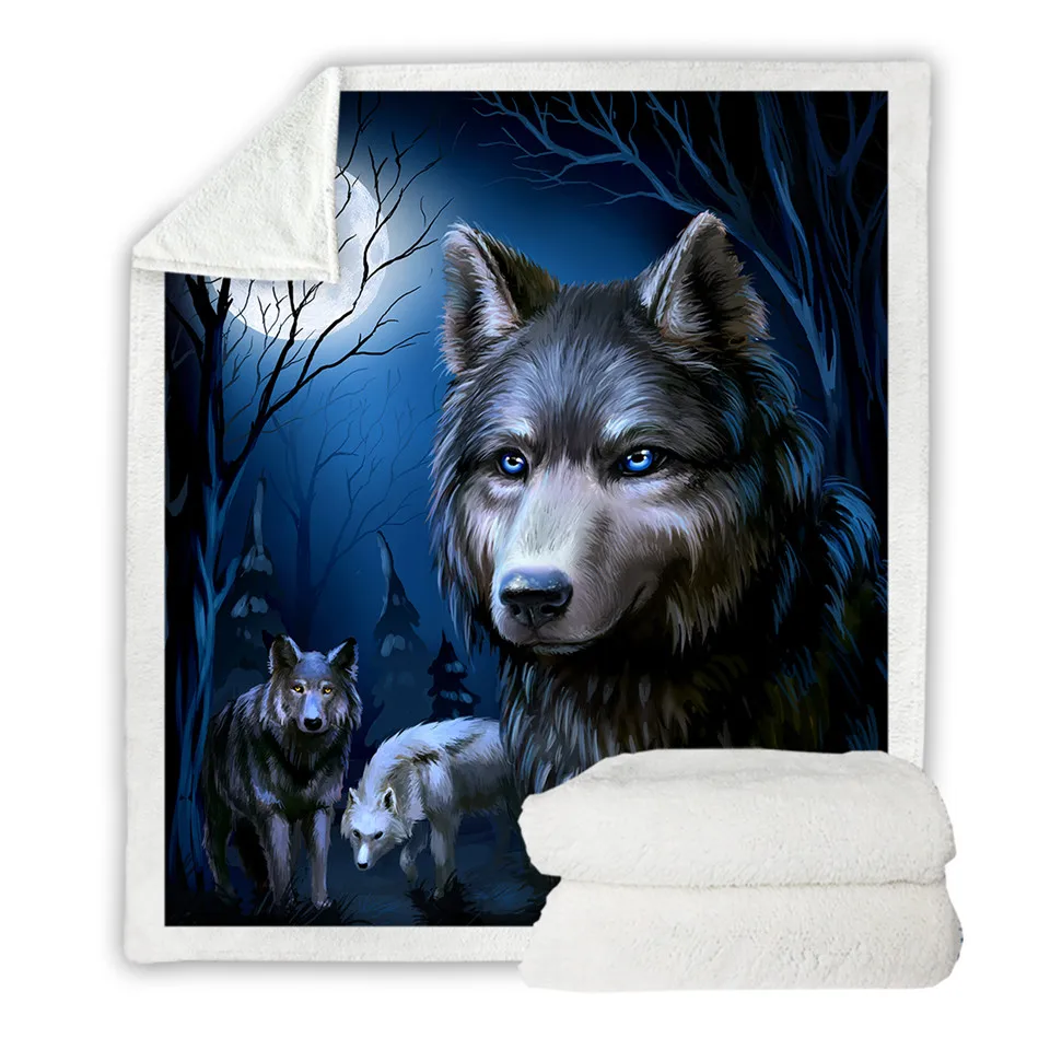 Одеяло BeddingOutlet с волчьим шерпой, животные, волки одеяло на заказ, одеяло с 3D рисунком леса, покрывало для кровати с лунным светом