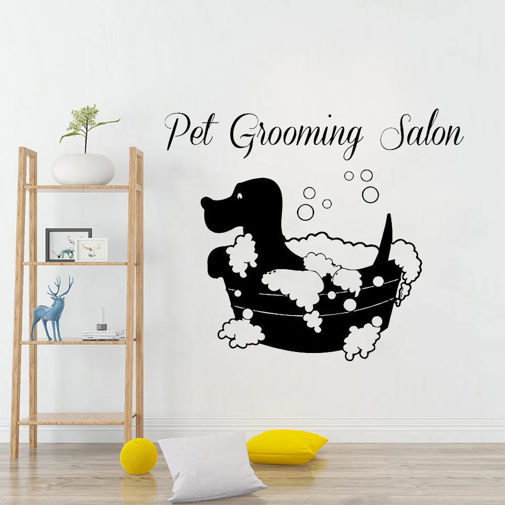 Зоомагазин, Виниловая наклейка на стену, для ухода за домашними животными, для салона, для ванны с собакой, художественная Наклейка на стену, украшение для салона домашних животных WL1011