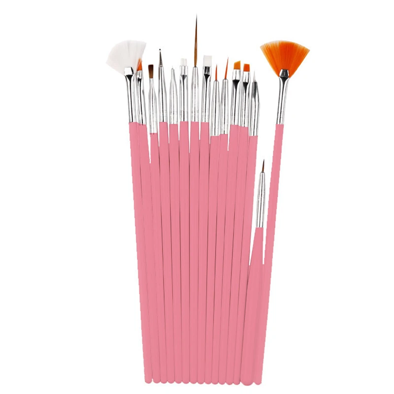 15 шт., профессиональная кисть для дизайна ногтей, ручка с деревянной ручкой, инструменты для ногтей для гель-лака.