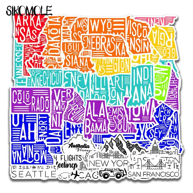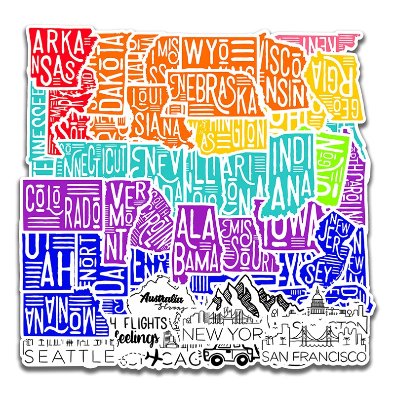10/30/50 шт Мультяшные художественного слова Стиль наклейка с видом города ноутбук скейтборд чемодан холодильник тетрадь игрушечный шлем наклейки