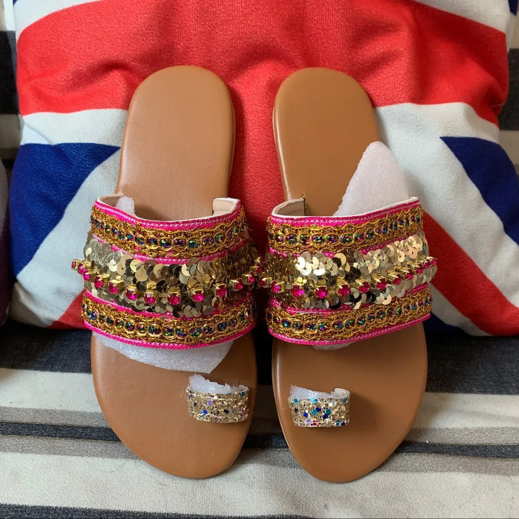 Шлепанцы женские ручной работы, сандалии в греческом стиле, плоская подошва, бохо, ручная работа, летняя обувь