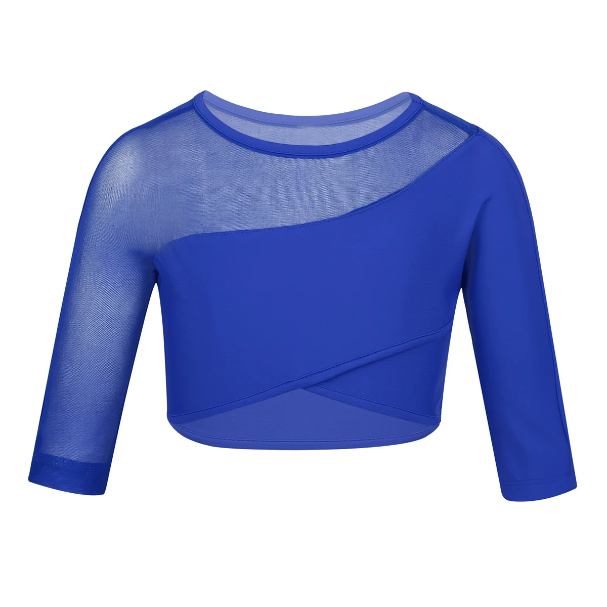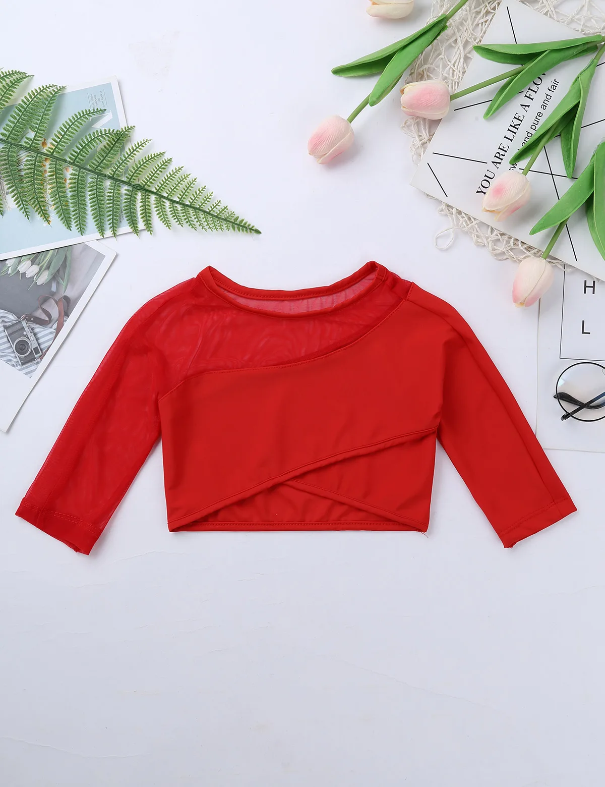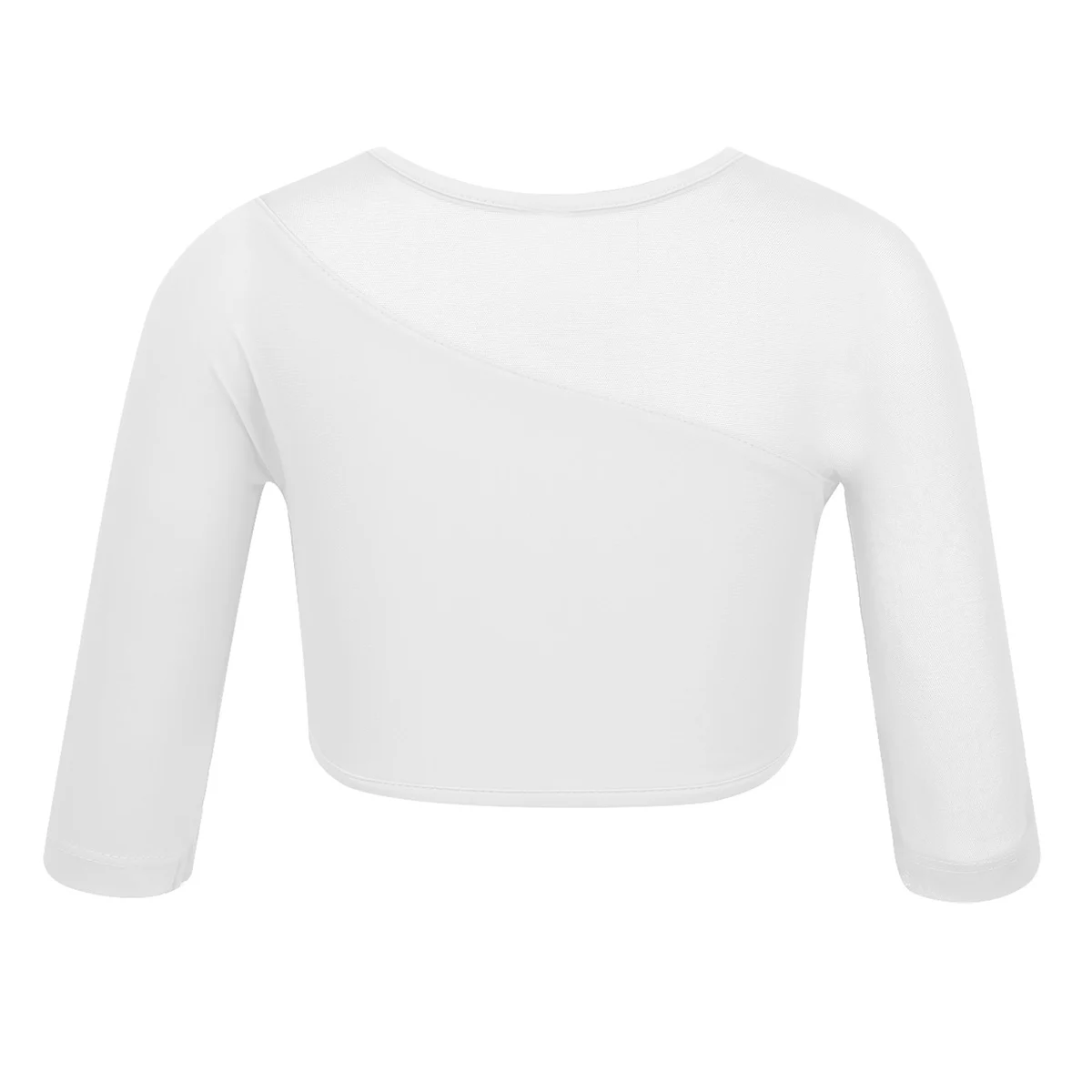 Особенности: Укороченный топ изготовлен из полиэстера, спандекс и сетка, ручная стирка. Таблица размеров означает возраст для девочек, но только для общего руководства. Рукава 3/4, асимметричный сетчатый вырез, рукава и асимметричный подол. Застежка на липучке. Эластичная ткань, дышащая, мягкая и удобная в носке. Модные топы для вашей девочки. Идеально подходит для балета, танцевального класса, выступления на сцене, тренировки и т. д.