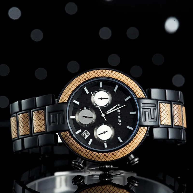 Мужские роскошные деревянные часы BOBO BIRD, часы из нержавеющей ст...